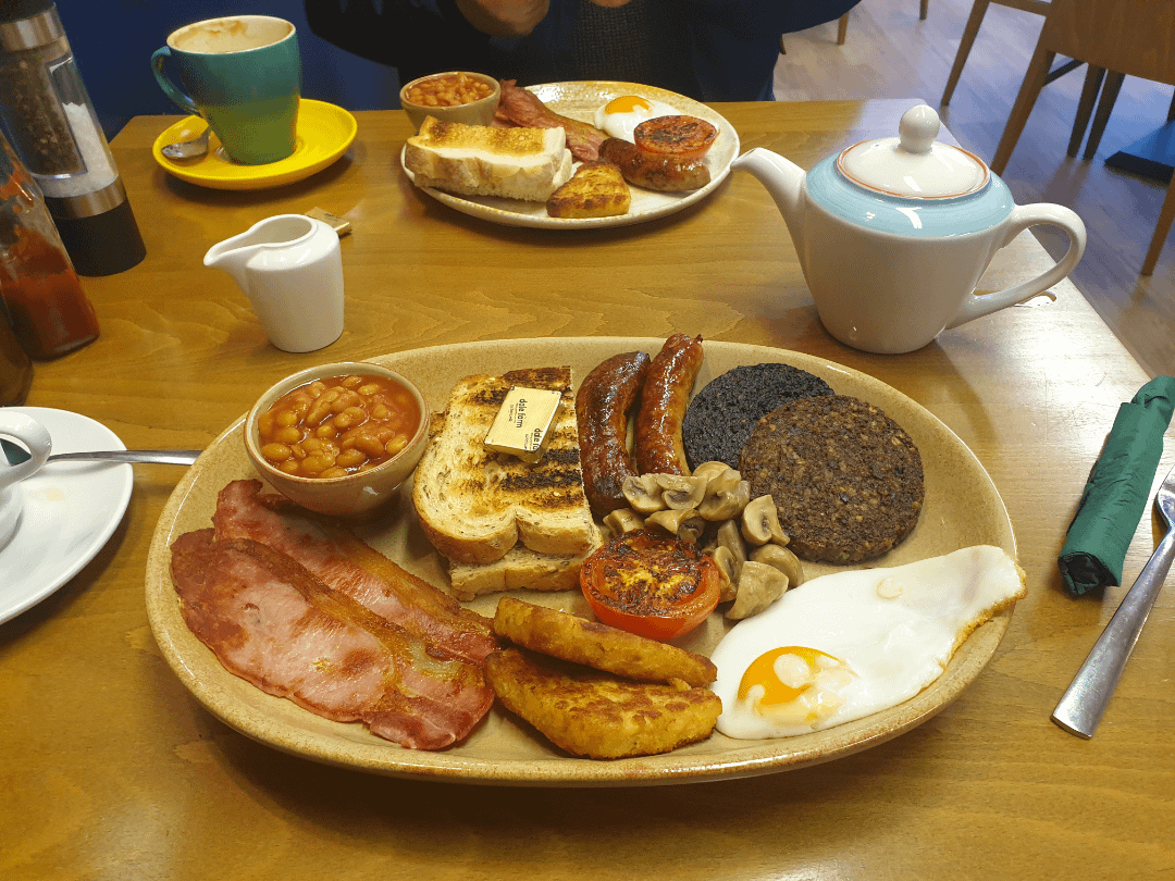 My partner's plate opposite is a Regular Breakfast @ £10.95 – it's not just further away… 🤣