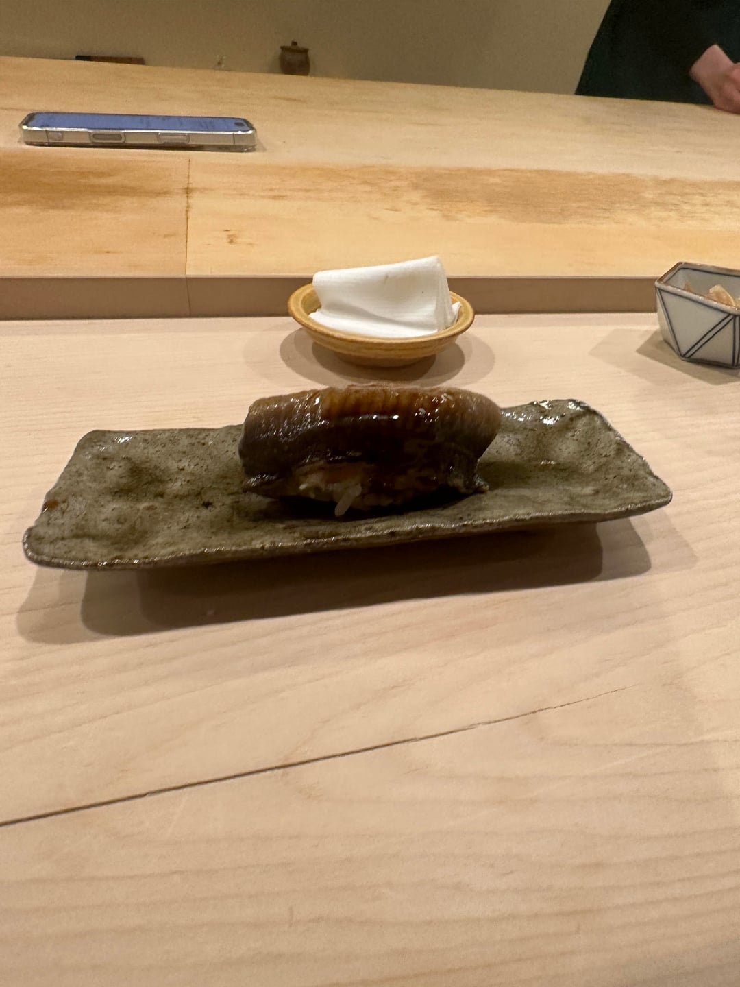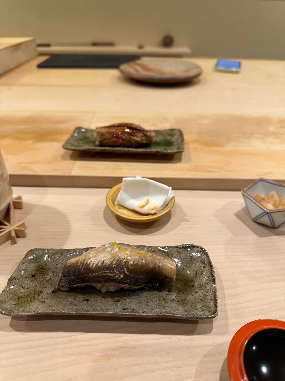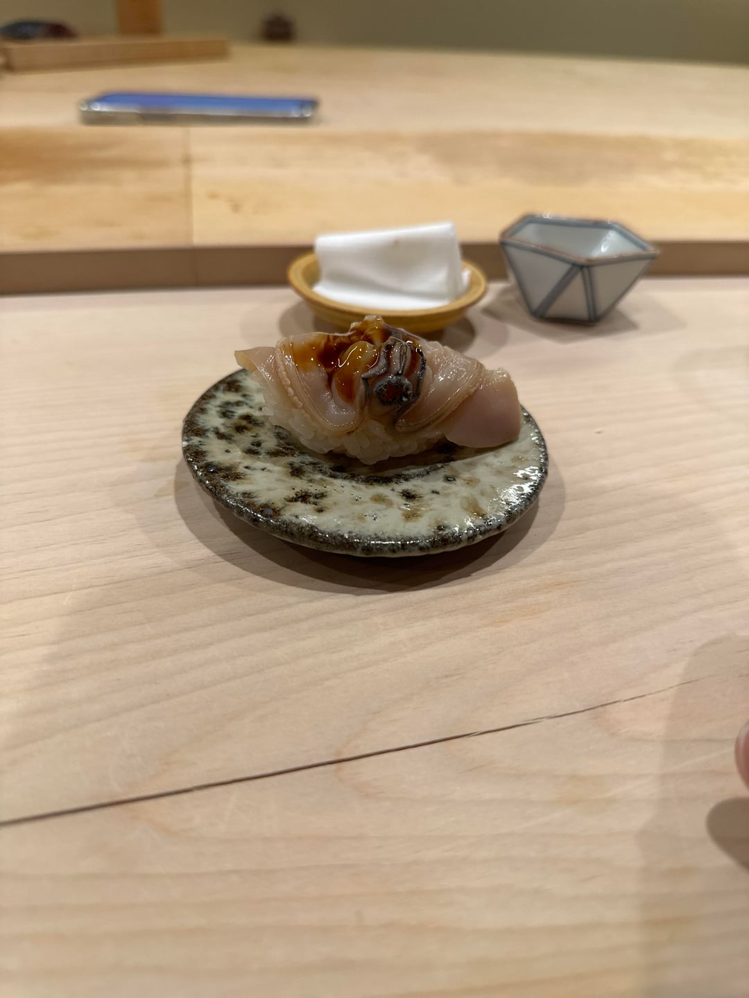 1. Kawahagi with kabosu and salt + kimo jouyu, excellent but a bit much kabosu (not a lot, a bit) 2. Kasugo – fucking fantastic, absolutely mogged any Kasugo I’ve had this year. Sadly he didn’t have more so I couldn’t order extras 3. Aji, also fantastic – one of the better ones I’ve had all year 4. Sumi ika, very good – I liked the aori ika a bit earlier at Kiku a bit more but this was very good too 5. Shirako with a spicy red paste I forgot the name of 6. Akami, excellent 7. Chu-toro, alright – a bit flat tasting 8. Kegani Chawanmushi, really really good – I loved the Kiku crabs I had earlier today but this was up there man 9. O-toro, looked like jabara but don’t know. I loved it regardless 10. Kohada, pretty good. I said this was better than Kiku but it’s really more that I didn’t love either lmao. I like kansai-style kohada a bit more 11. Akagai, excellent – light bright touch of citrus form kabosu really brightened it 12. Uni, one of ogawa’s standard boxes. Pretty good, better than what I’d have of that box (granted didn’t really the provenance so hard to compare like that lol) 13. Shirakawa, great – a very fun and clean taste that actually went super nice with the citrus 14. Hamaguri with tsume and a bit of kabosu, amazing. My favorite of the trio and that’s saying a lot because I loved the Kiku version 15. Saba bozushi, I like this a bit more than Yoshizumi’s but I still prefer Katsu’s 16. Anago with salt and citrus, superlative – an amazing anago, you’d never tell they don’t use Ueken anymore 17. Anago with tsume, excellent as well but I preferred the former 18. Misojirou, there were more courses I just didn’t take photos/write them all down
