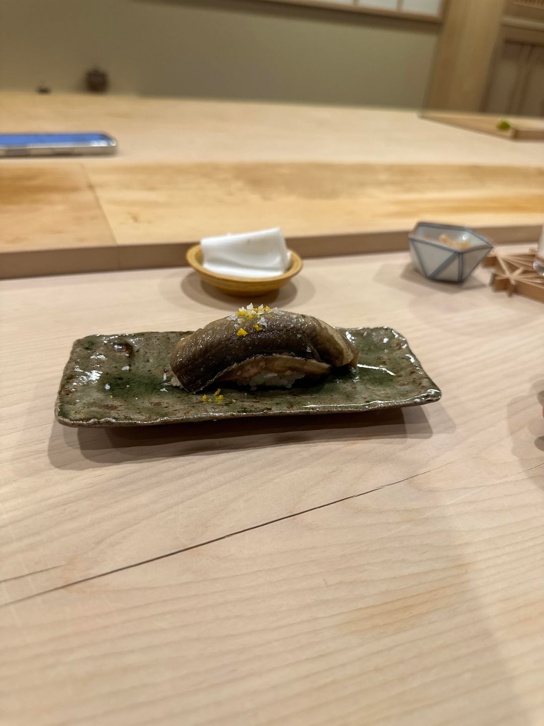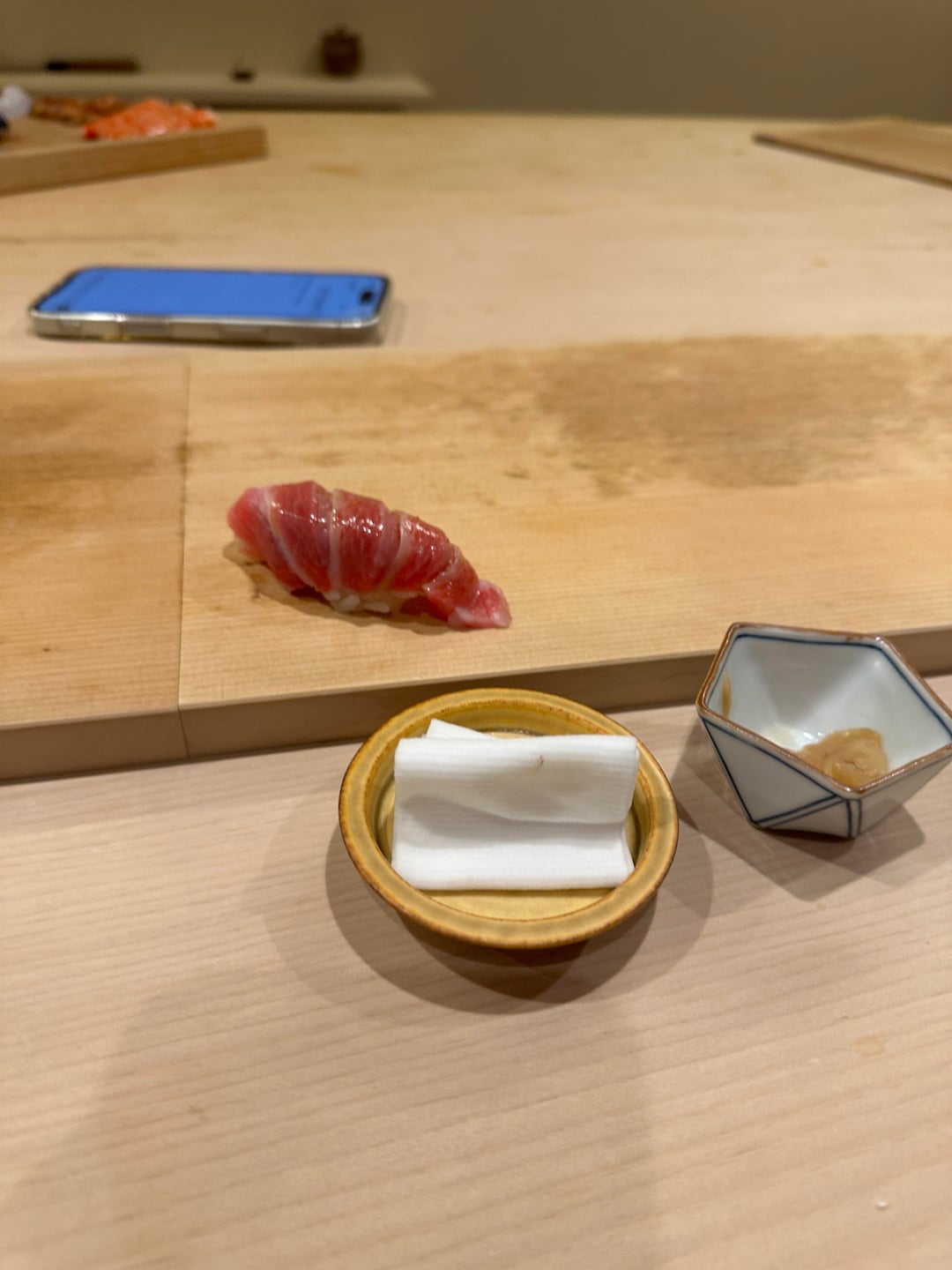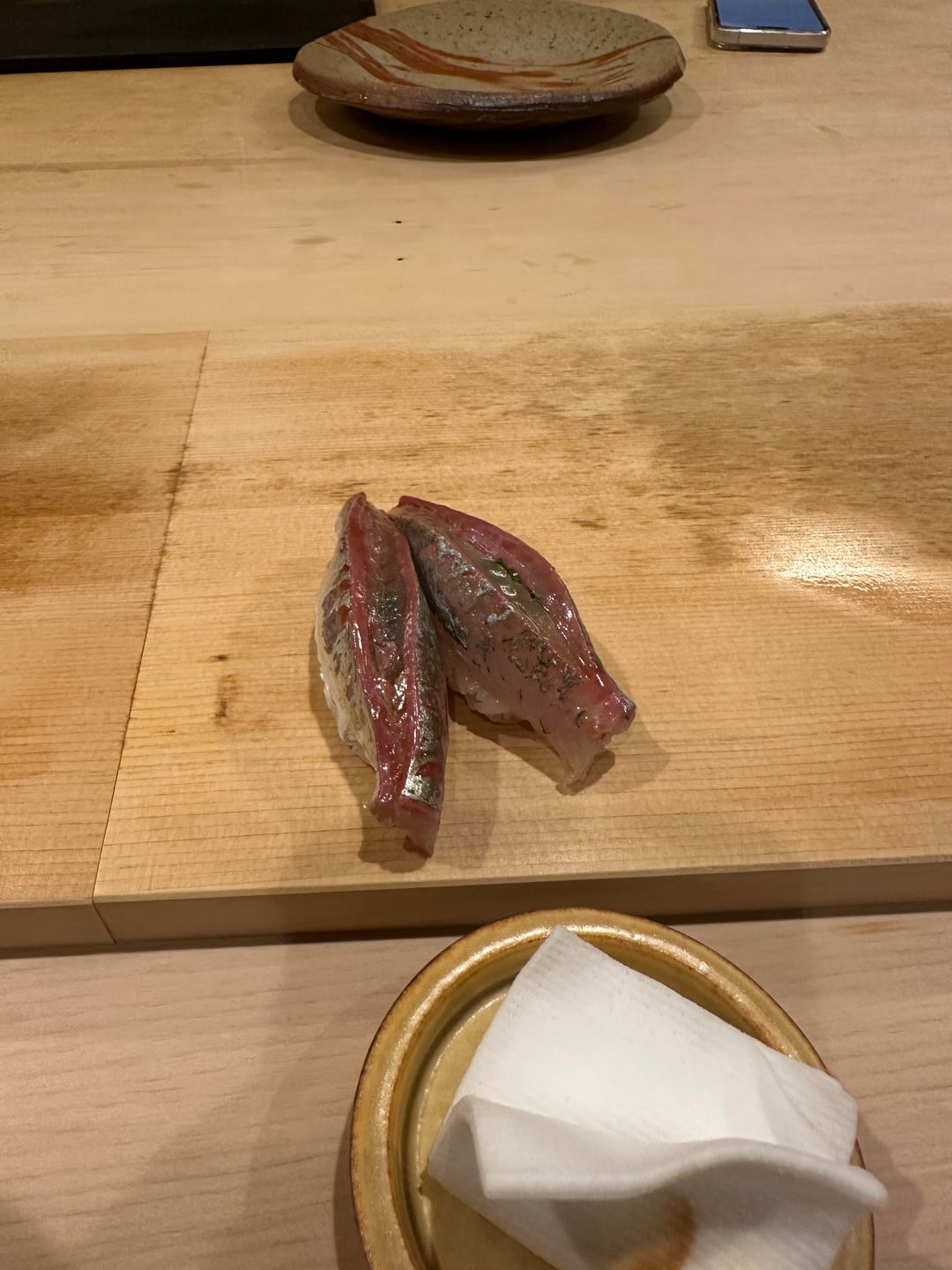 1. Kawahagi with kabosu and salt + kimo jouyu, excellent but a bit much kabosu (not a lot, a bit) 2. Kasugo – fucking fantastic, absolutely mogged any Kasugo I’ve had this year. Sadly he didn’t have more so I couldn’t order extras 3. Aji, also fantastic – one of the better ones I’ve had all year 4. Sumi ika, very good – I liked the aori ika a bit earlier at Kiku a bit more but this was very good too 5. Shirako with a spicy red paste I forgot the name of 6. Akami, excellent 7. Chu-toro, alright – a bit flat tasting 8. Kegani Chawanmushi, really really good – I loved the Kiku crabs I had earlier today but this was up there man 9. O-toro, looked like jabara but don’t know. I loved it regardless 10. Kohada, pretty good. I said this was better than Kiku but it’s really more that I didn’t love either lmao. I like kansai-style kohada a bit more 11. Akagai, excellent – light bright touch of citrus form kabosu really brightened it 12. Uni, one of ogawa’s standard boxes. Pretty good, better than what I’d have of that box (granted didn’t really the provenance so hard to compare like that lol) 13. Shirakawa, great – a very fun and clean taste that actually went super nice with the citrus 14. Hamaguri with tsume and a bit of kabosu, amazing. My favorite of the trio and that’s saying a lot because I loved the Kiku version 15. Saba bozushi, I like this a bit more than Yoshizumi’s but I still prefer Katsu’s 16. Anago with salt and citrus, superlative – an amazing anago, you’d never tell they don’t use Ueken anymore 17. Anago with tsume, excellent as well but I preferred the former 18. Misojirou, there were more courses I just didn’t take photos/write them all down