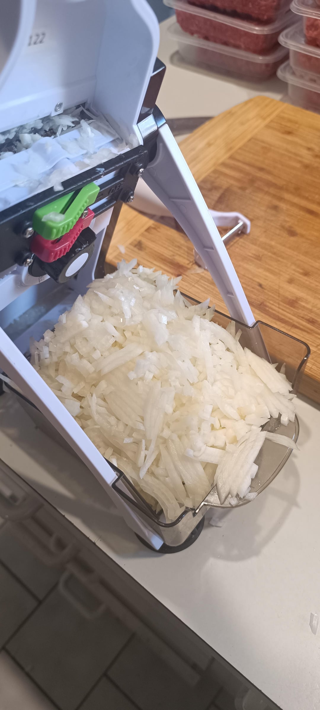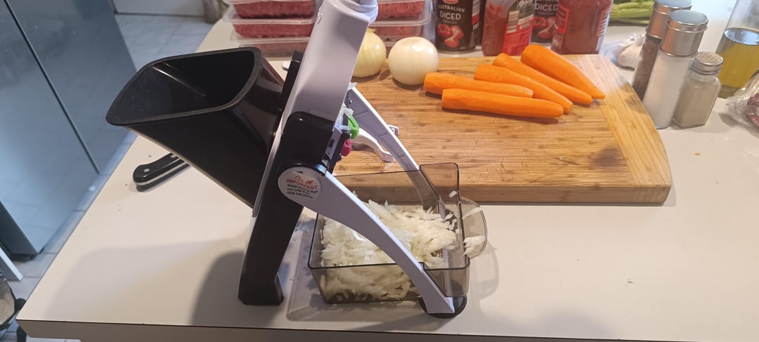 That chopping device is a disgrace. Take pride in your cooking and use a knife to chop your stuff.
