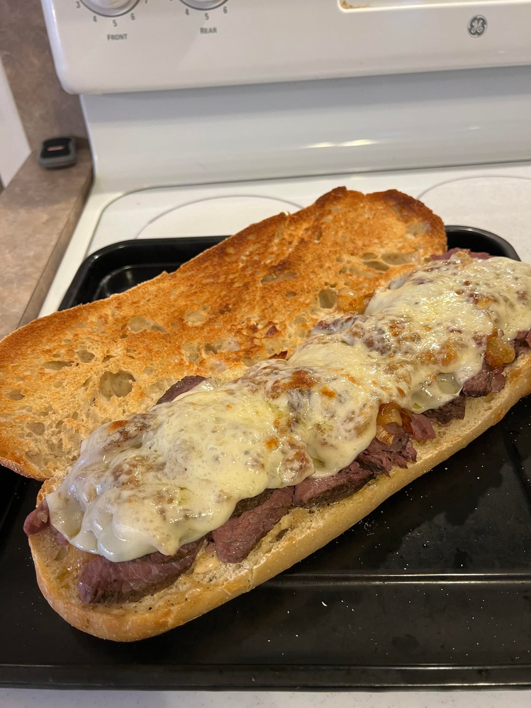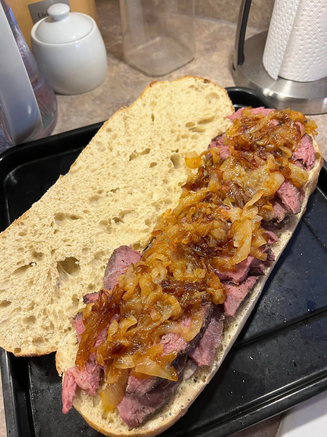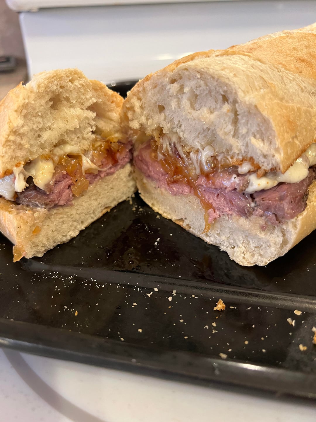 I dry brined a four pound round roast for eight hours. Then heavily peppered the roast along with some garlic powder. Sous vide for 24 hours at 130 degrees Fahrenheit. The beef flavor and texture were perfect. Reminiscent of a great prime rib. Assembled the sandwiches on a French roll with some caramelized onions, provolone, and smear of horseradish sauce. The beef was tender enough to bite through and allow the sandwich to stay intact. Absolutely incredible. An all time favorite.