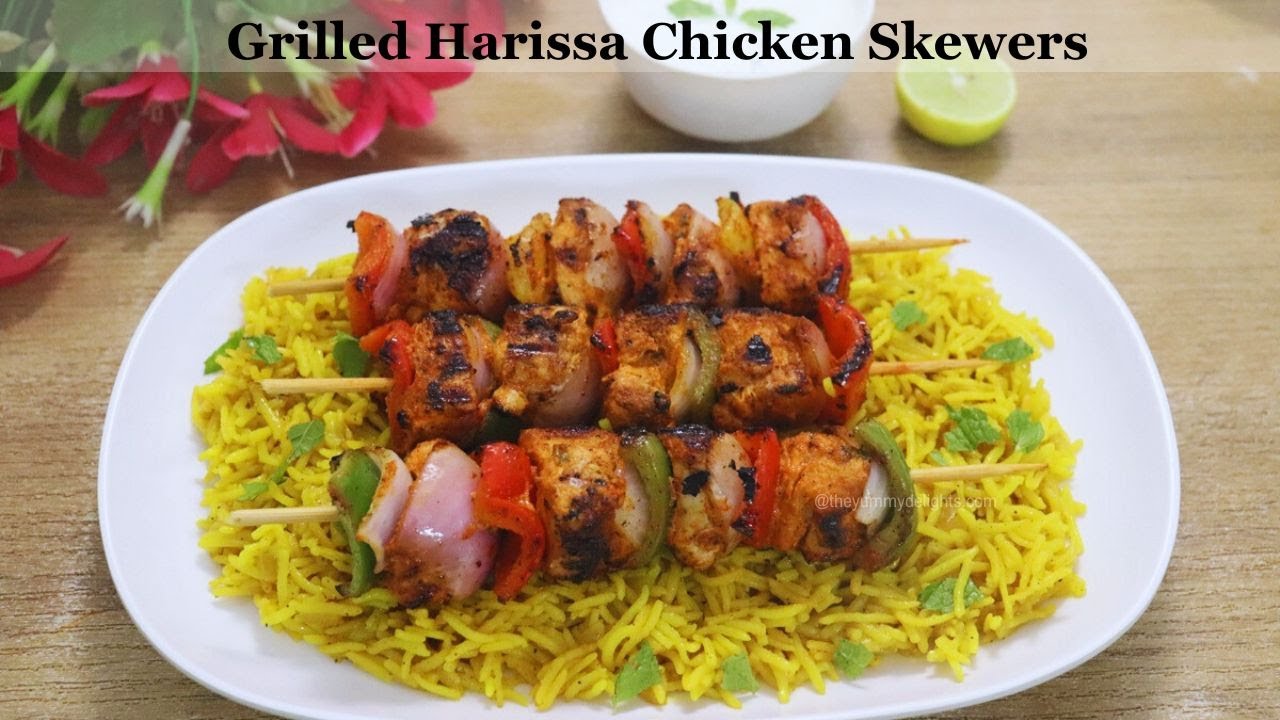 Grilled Harissa Chicken Skewers | Spicy Harissa Chicken Skewers Recipe | Harissa Chicken Kabobs | Harissa Chicken Recipe