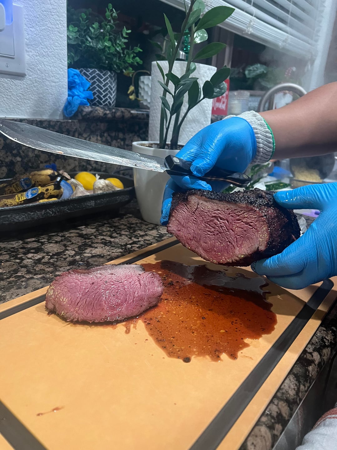 That looks perfect. I too have joined the picanha bandwagon for the first time a while back. It’s one of my favorite cuts now on the Traeger. Smoke with mesquite and finish mine with a sear from the gas grill. Hot as I can get it. Medium rare! 😋