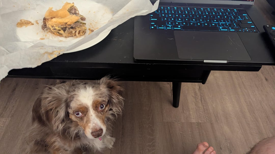 The burger looked good (before you chomped it). The toes and the burger destruction were disturbing, but I’m up voting the wrap and the dog (who I saw close up before I saw the full end pic).