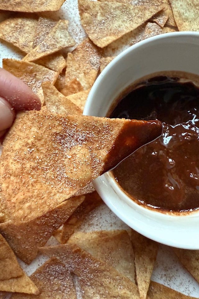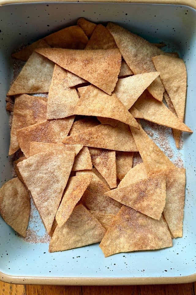 7. Sprinkle cinnamon sugar mixture over the chips.