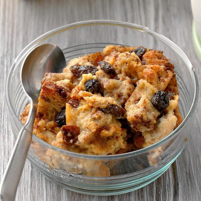 All my leftover bread ends (raisin bread is a favorite in this house) and buns go in the freezer. Then, when I’ve stashed away enough, I whip up a batch of this pudding. It’s an all-occasion dish—I’ve made it for holidays, potlucks, picnics…for any occasion or no occasion! —Dawn Green, Hopkins, Michigan