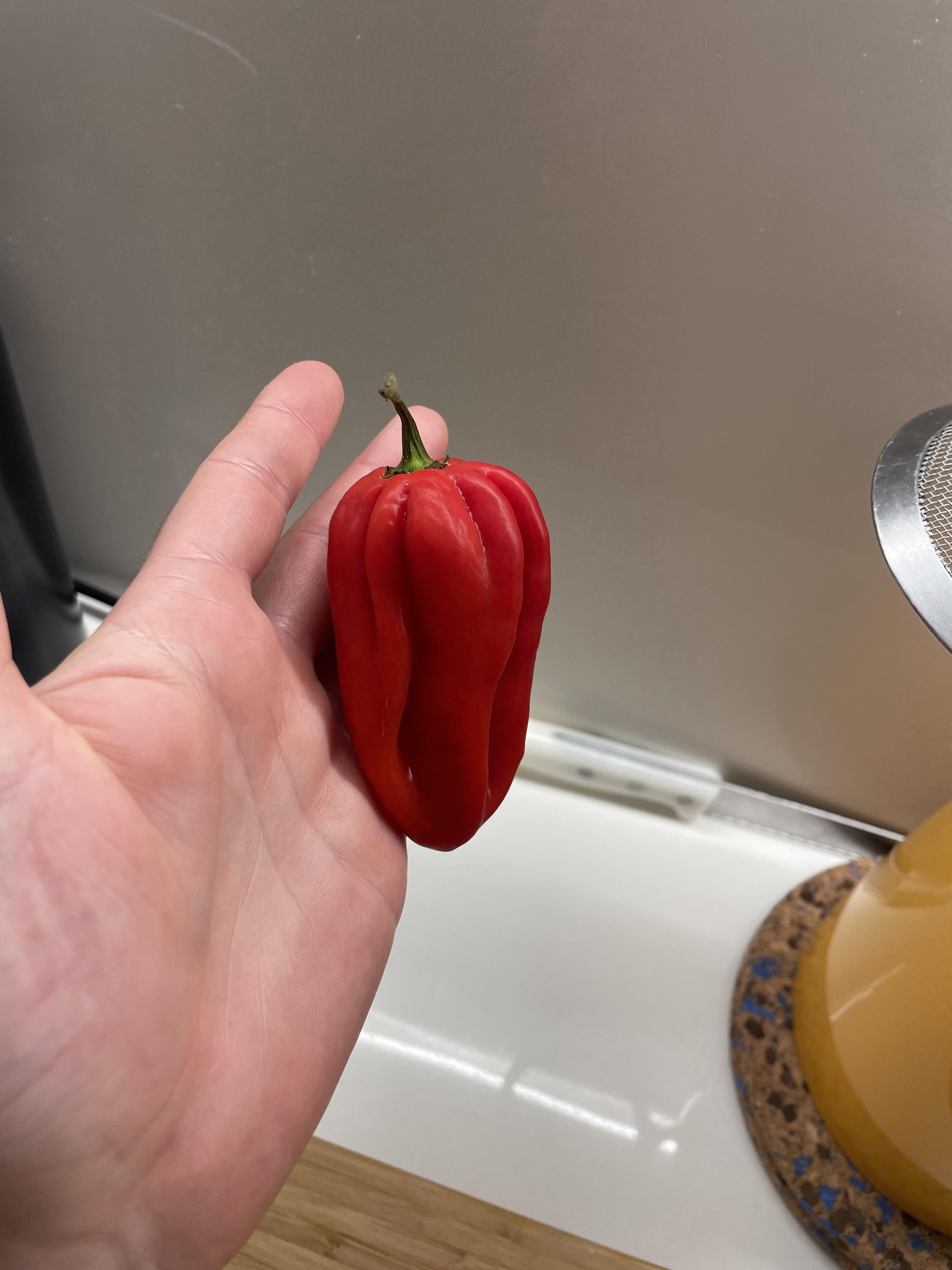 taste it. Looks habanero, so it should be 150K-350K SHU hot
