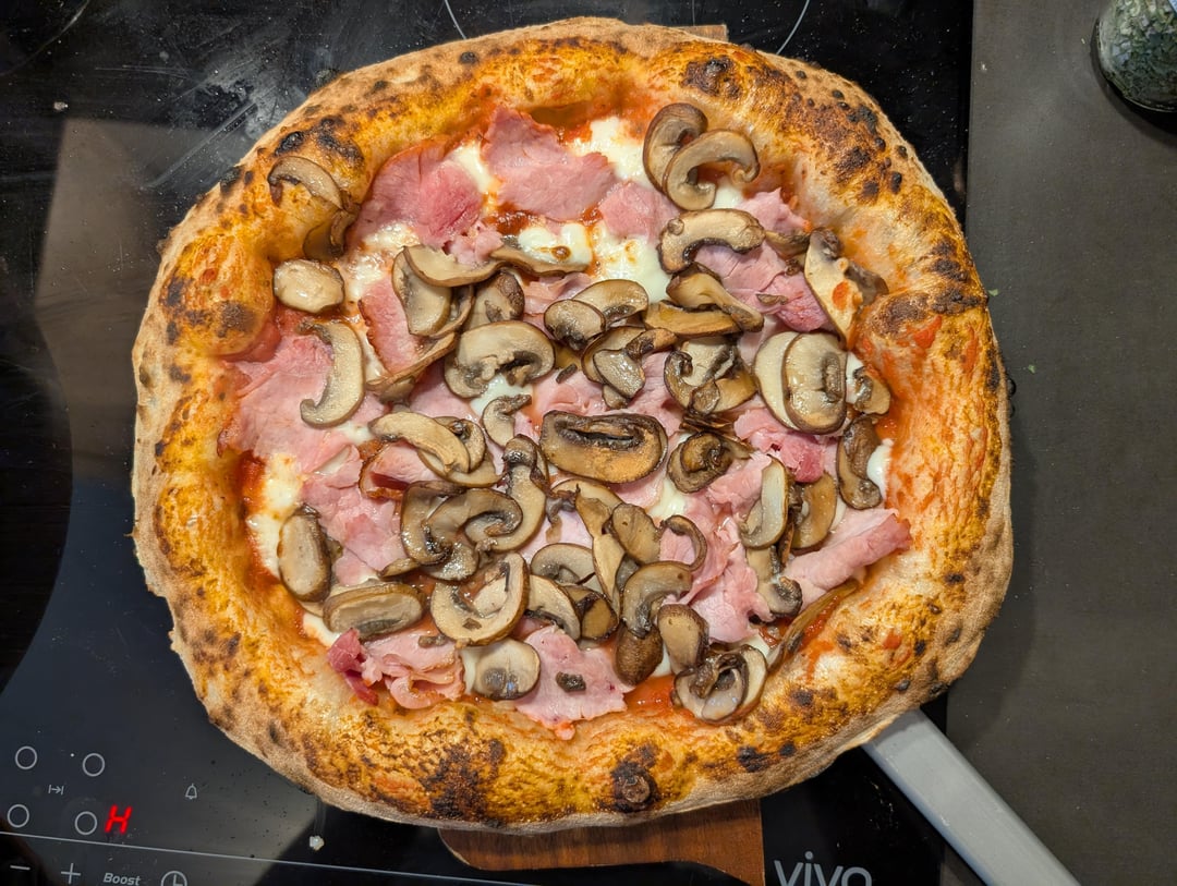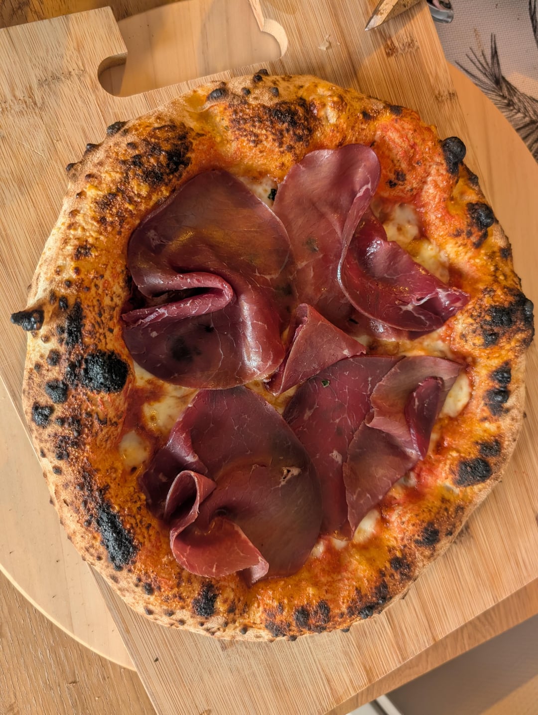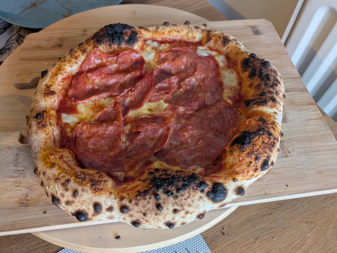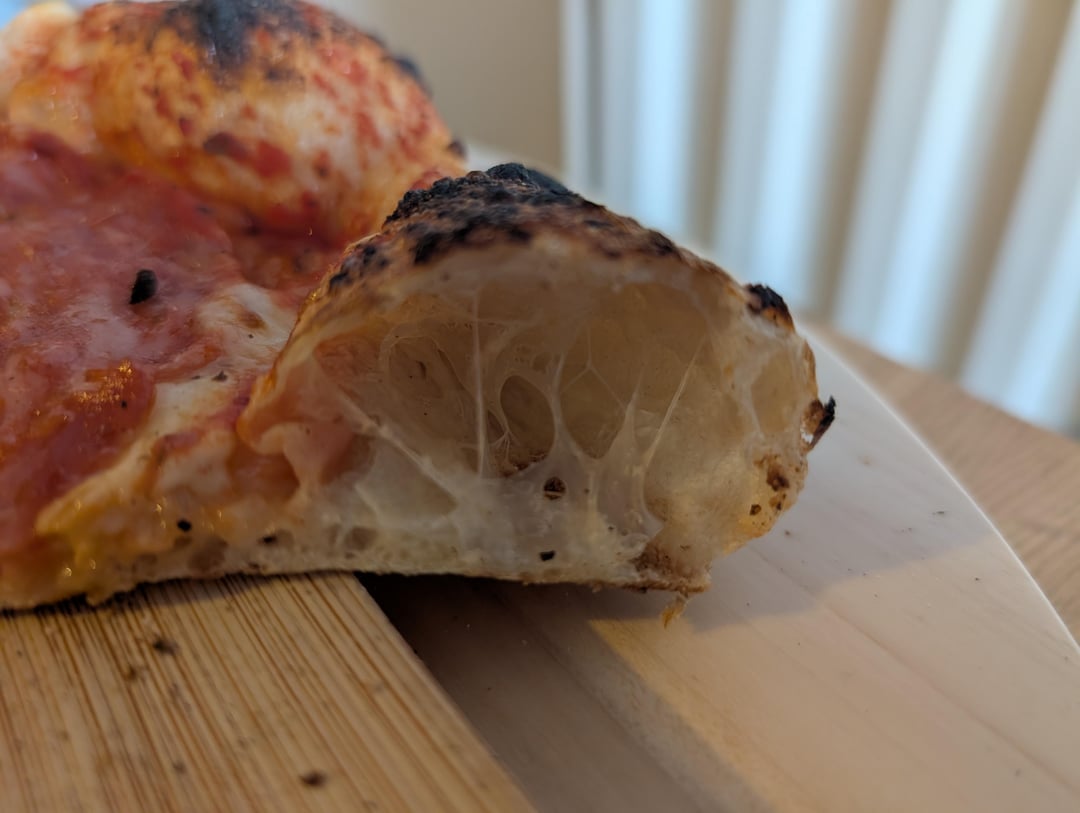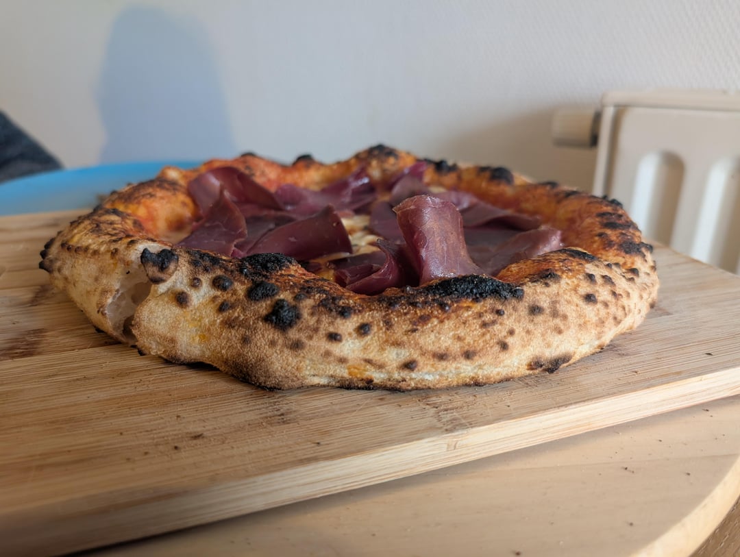 Hello there: once again, I chose to use Julian Sisofo's cold fermented biga. But instead of putting 4,5g of fresh yeast (three times the dosage of dry yeast that Julian uses), I put only 2,36g. The fermentation went way more smoothly, which shows that the usual rule of the thumb "3g of fresh yeast for 1 of dry yeast" is wrong, unless you're looking for a fast rise. So, cold fermented biga for 48H, made the final dough, CT for another 24H, balling, CT for about 14H then a final 2H rise at room temperature before making the pizzas. Great result, one of the best I've had.