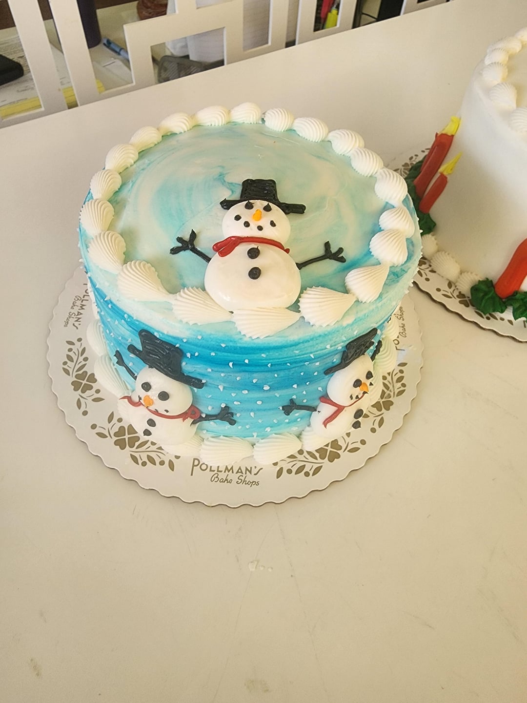 heathersphilosophy 5 months ago The little snowmen are so charming. The blue frosting gives the whole thing a sweet winter feel.