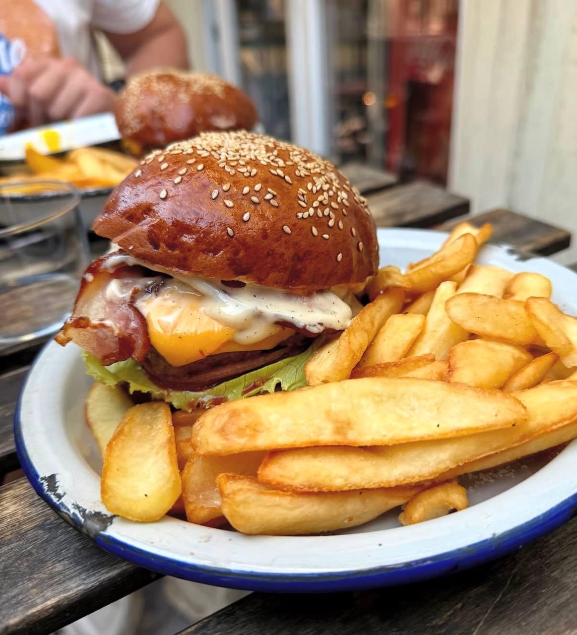 Burger and fries both look great.