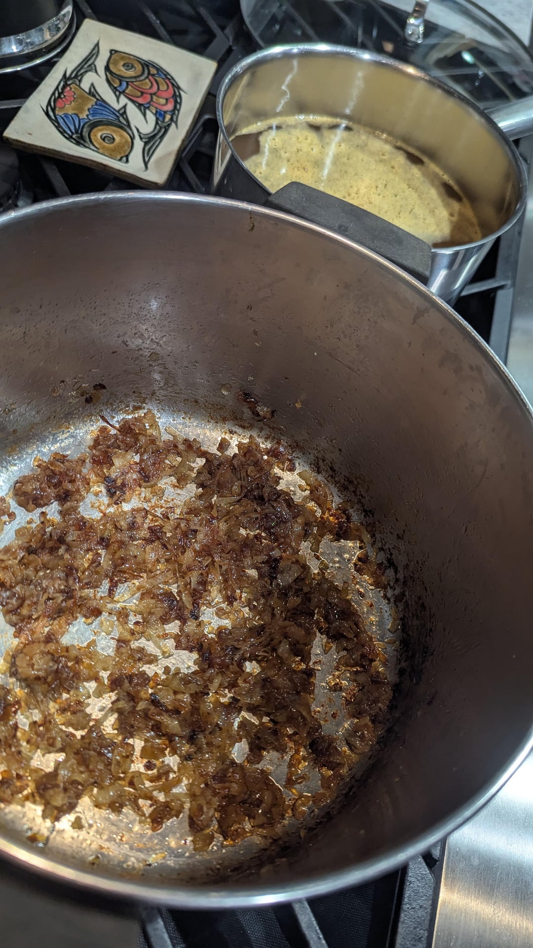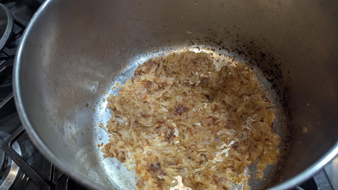 Next time add a little more liquid, so the natural sugars in your onions don’t carbonize as much. You’ll get a slightly sweeter taste and more depth of flavour from the onions themselves.