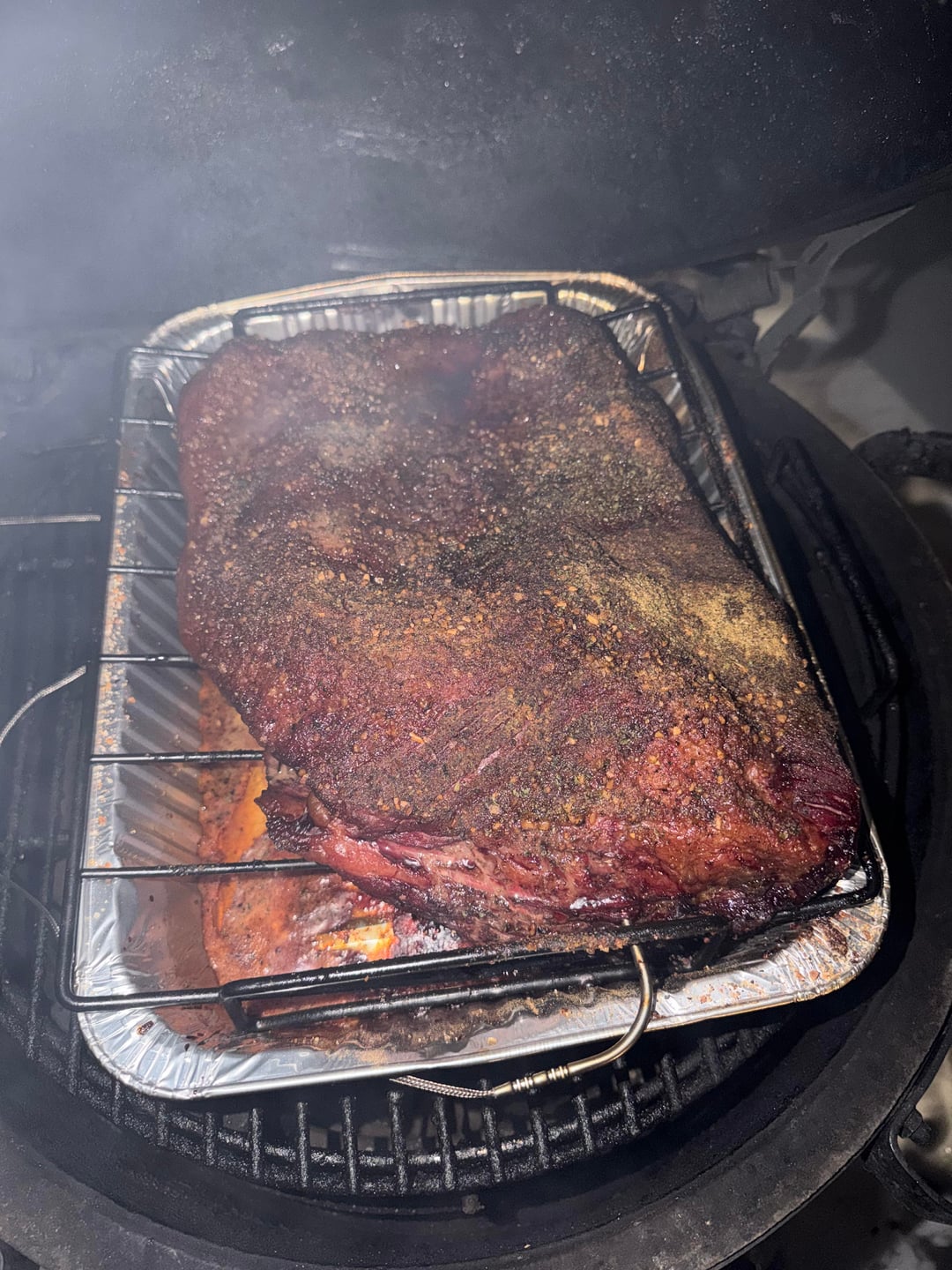 I use an INKBIRD controller keeps the egg at 225 perfectly set it and forget it! So good I love my egg!Oh yeah and my dog Kai wishing I would drop it so he can eat itby booboosbeast 6 Comments CalPolyGardenGuru 1 month ago 20hrs is insanely long for a brisket, does that include rest? White-runner 1 month ago Kai looks mighty disappointed, hope he got a little piece! booboosbeast 1 month ago Apple juice for no reason did I choose apple juice but in my mind I could taste it lol Roux_My_Burgundy 1 month ago Slice as you serve LopsidedAlbatross703 1 month ago Gotta love that mpr1283 1 month ago Your dog is gazing right into my soul. Also, 20 hours! Epic.