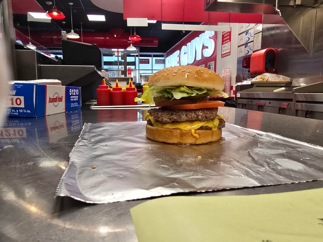 i guess this is the first time i’ve seen a five guys burger *before* it gets all smushed and wrapped up in the foil