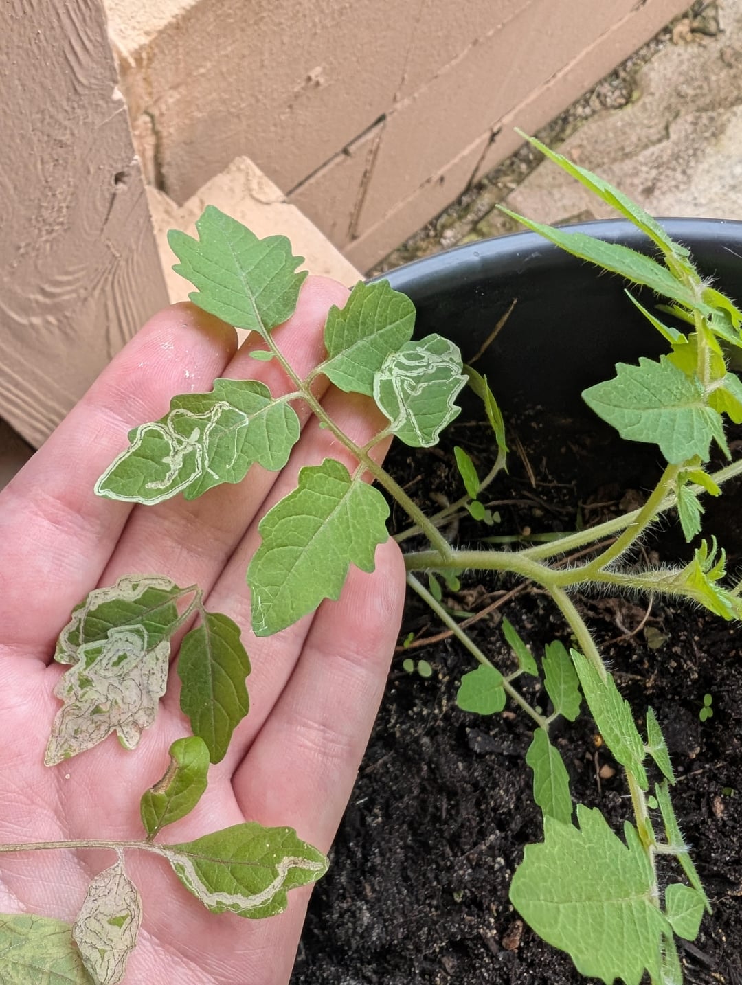 I don't usually grow plants; it's my mom with the greenthumb, but I really enjoy the tomatoes that come from this species and asked her if I could have some to grow at my house. I hope I can do something for these lil guys. I did pluck the damaged leaves off of one of the plants before I double guessed myself on if I should have done so. Pointers and advice will be very appreciated. TIA!