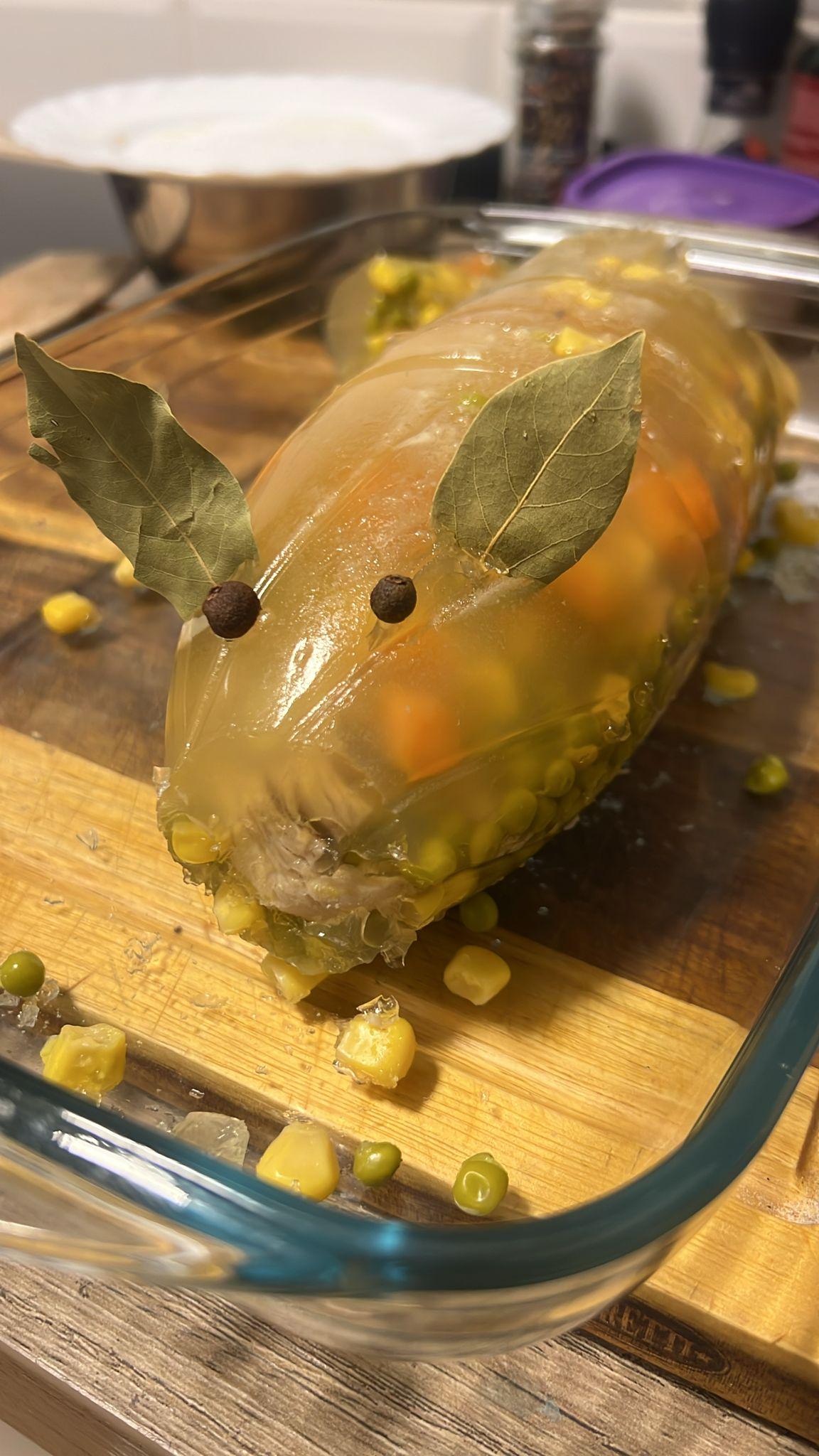 Aspic has to be one of the least visually appealing foods. Even a cute one like this.