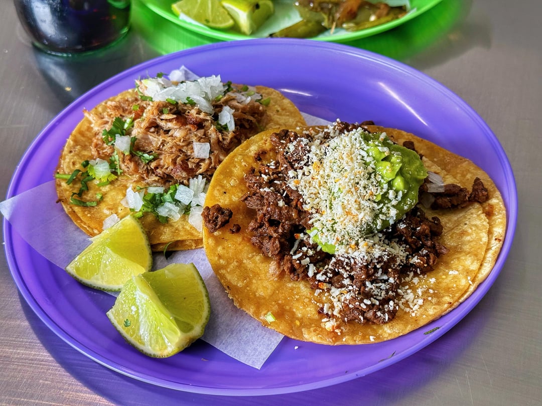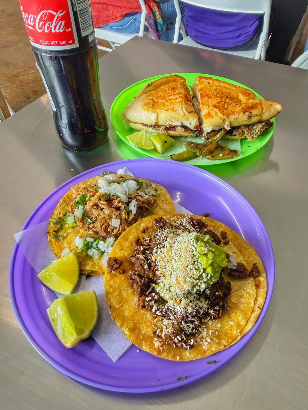 In the photos: Bistec and Carnitas Tacos, and Carnitas Torta