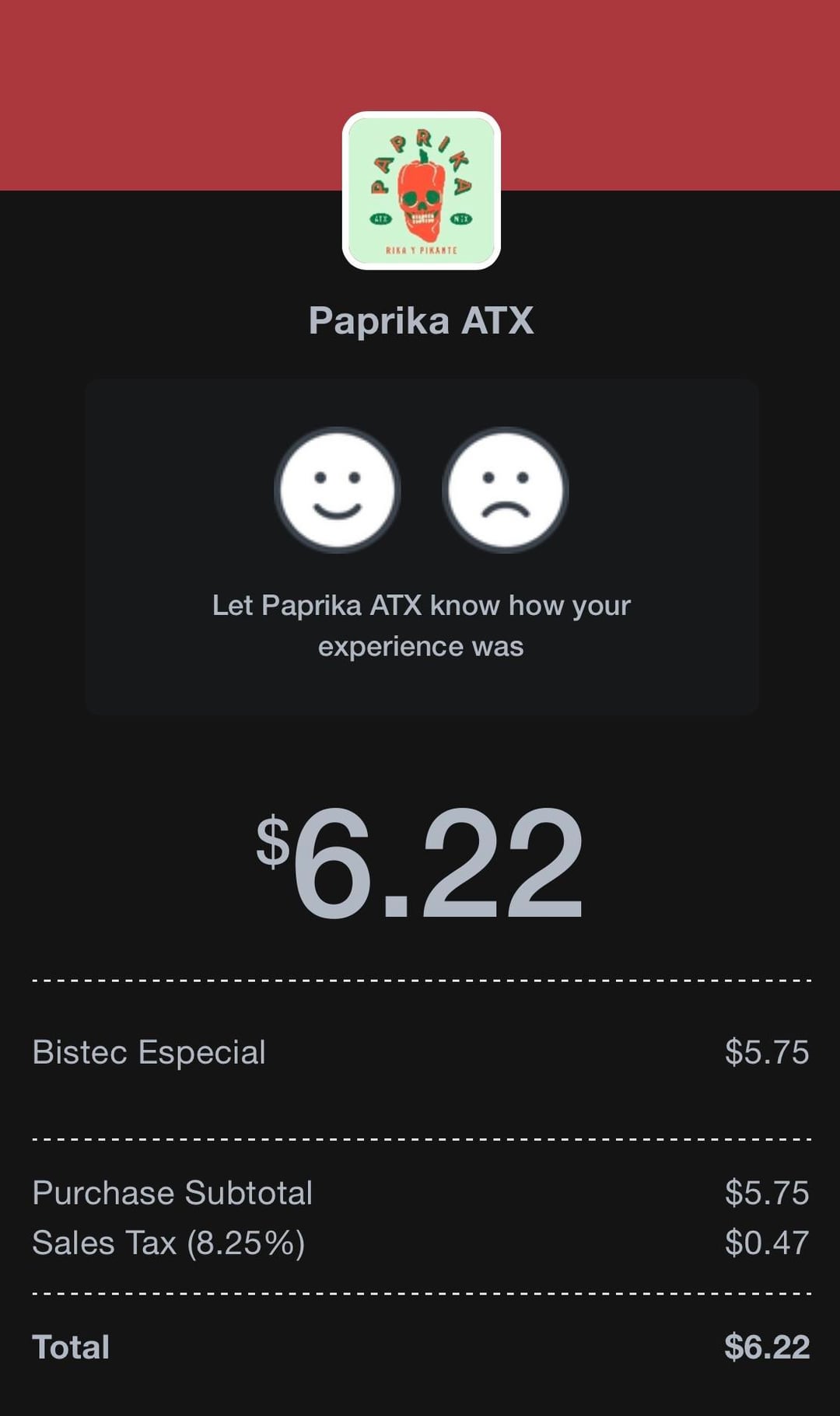 Yeah, love paprika. Been eating them for a couple years? But damn. Hella expensive. $3 used to be expensive for a similar taco, but still bigger. Good people, but yeah, adds up quickly.
