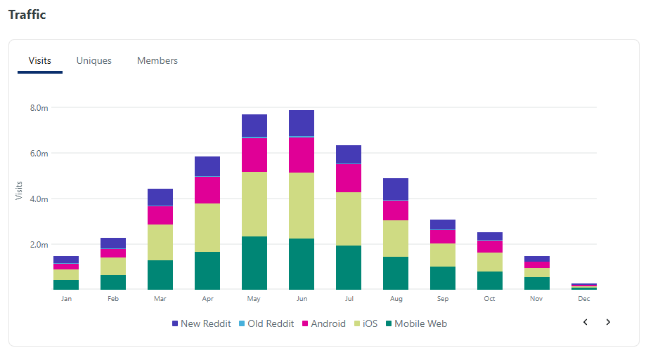 This is a really solid, beautiful graph with logical data. Winter in the northern hemisphere is quiet time which makes sense. And the colors are pretty.