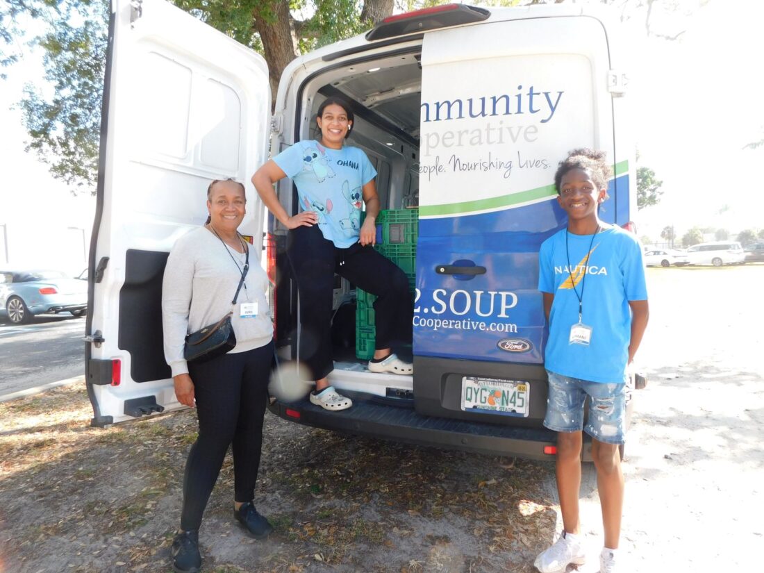 Avril Allen, Sairis Ramirez and Kymani Myrie collect food for Community Cooperative. PROVIDED