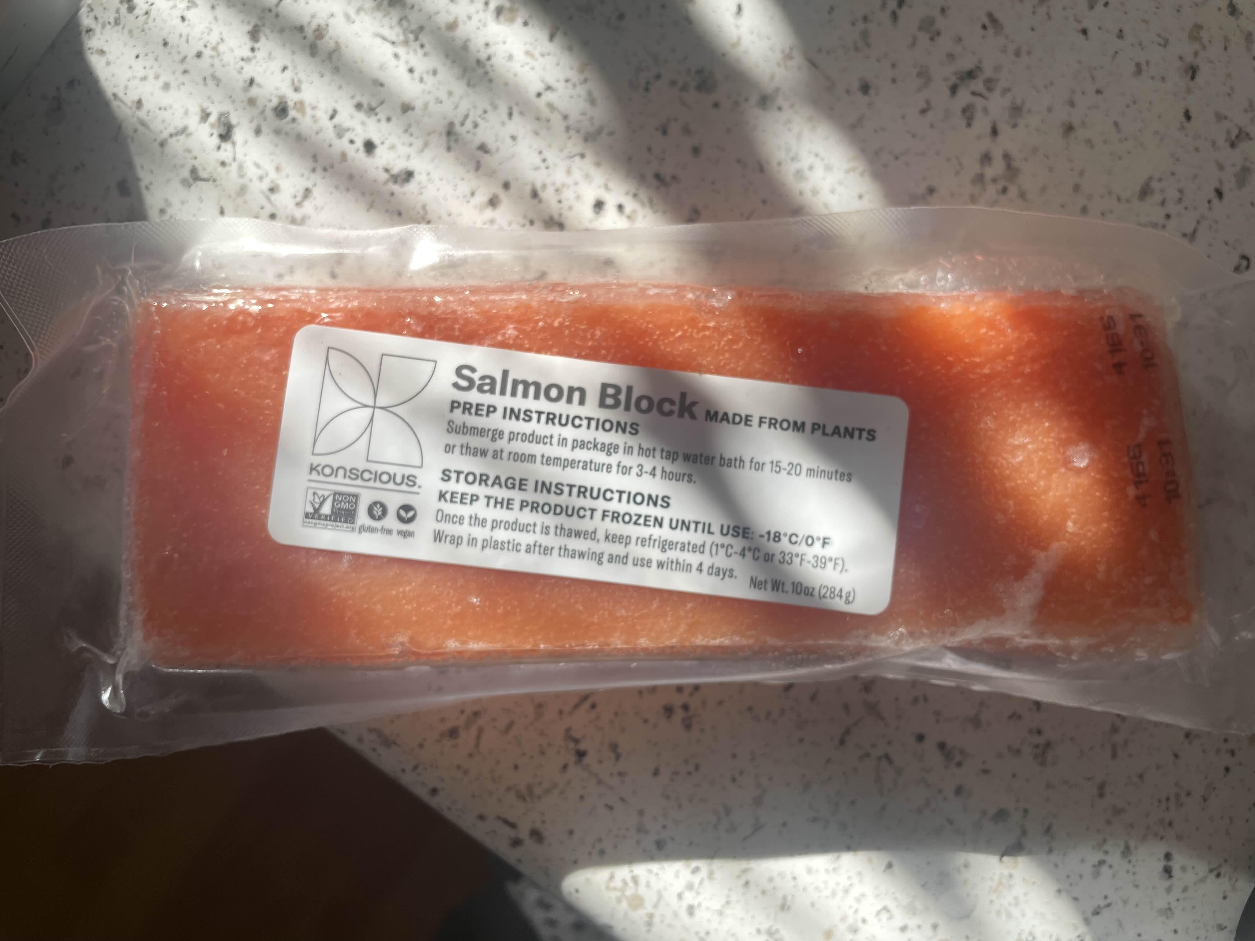 I googled it and it looks like you can use it for lox on bagels or sushi or a poke bowl. Doesn’t seem like it’s meant to be cooked like a regular salmon fillet. This is what I input in my Google search: konscious salmon block made from plants