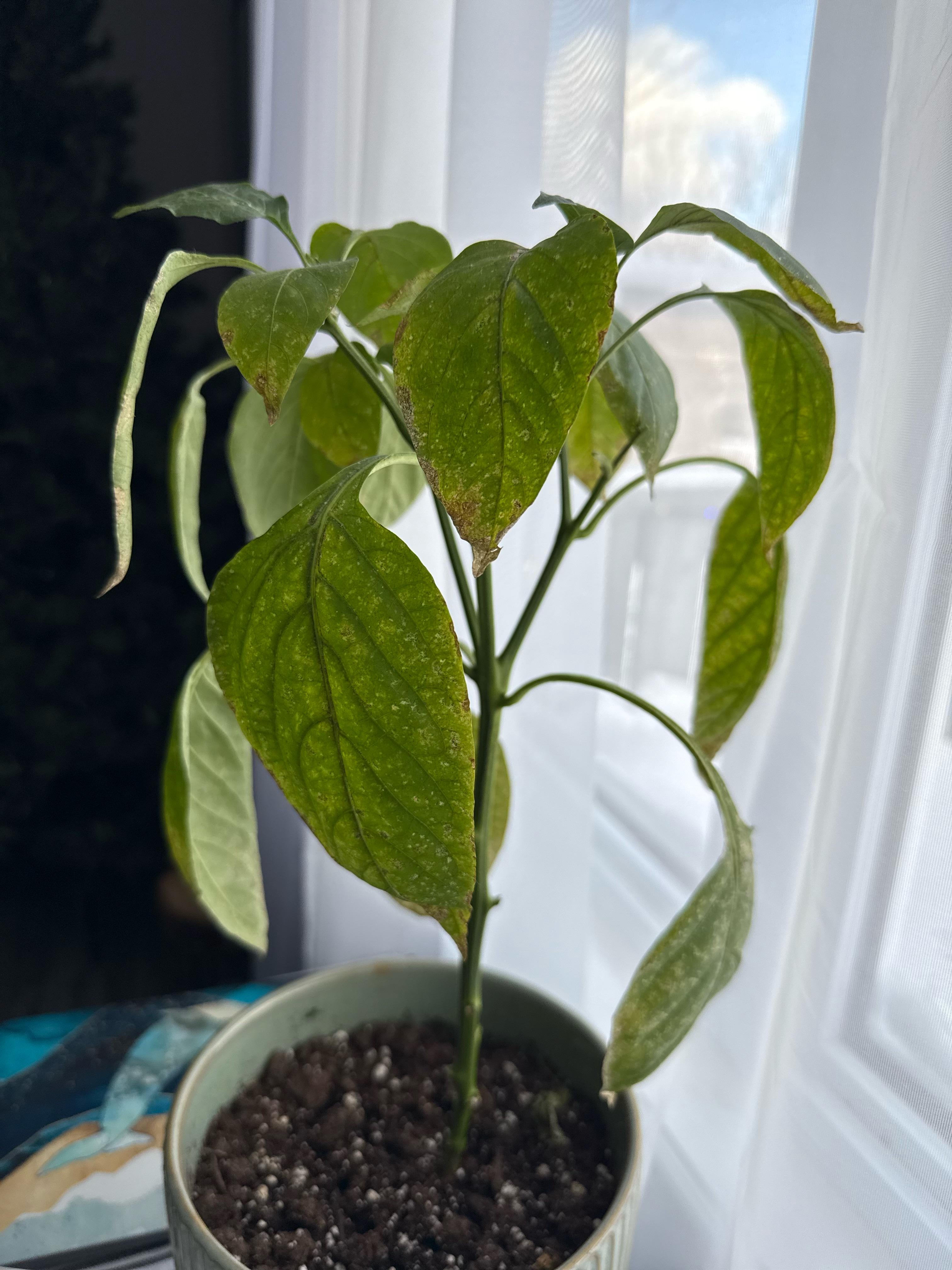 Thrip or mite damage and some nutrient issues , the pests literally suck juices out of the leaves so that doesn’t help