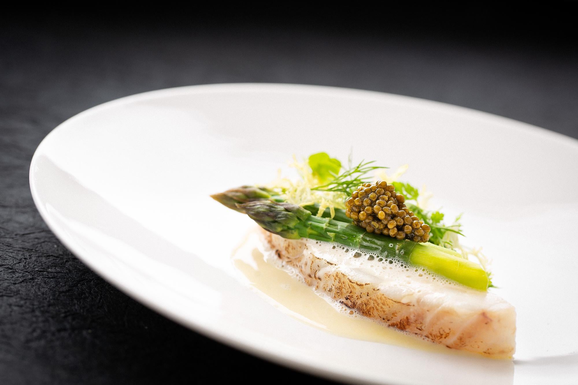 Wild Turbot, asparagus, Kaluga caviar and champagne sauce