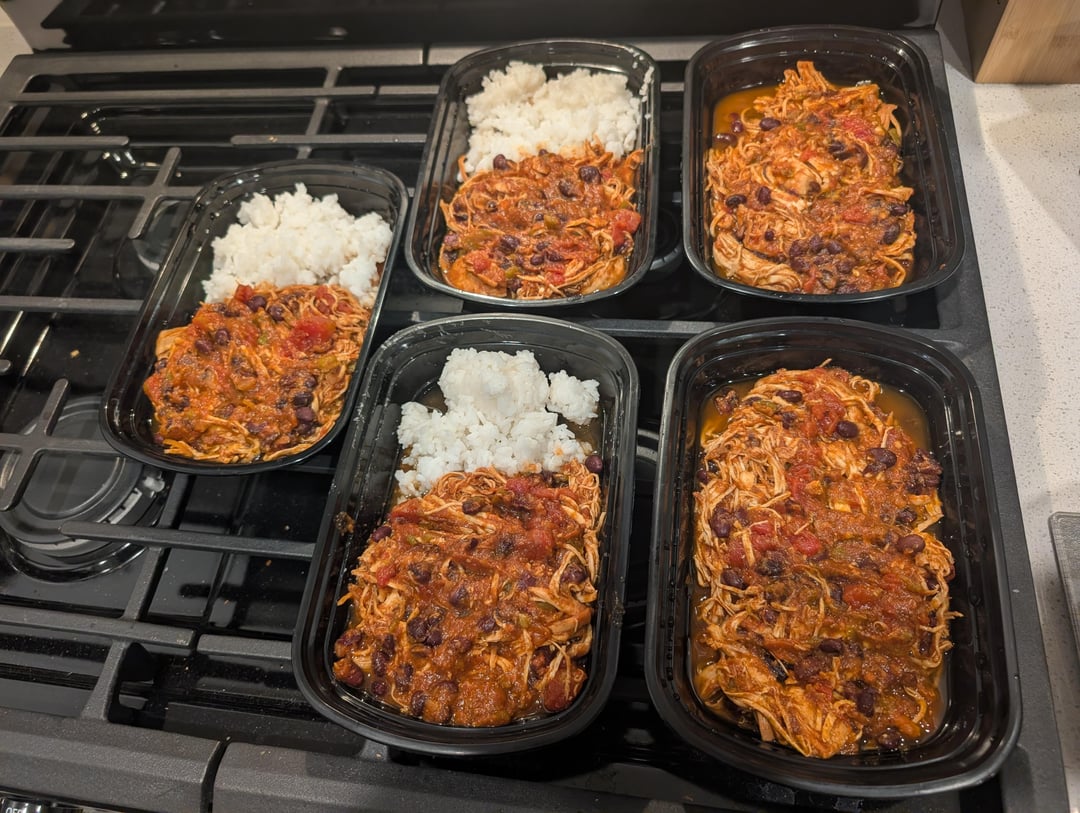 2) Pour & Add: Pour the salsa over the chicken. Add the diced tomatoes (with juice) and the drained, rinsed black beans. Sprinkle with seasoning.