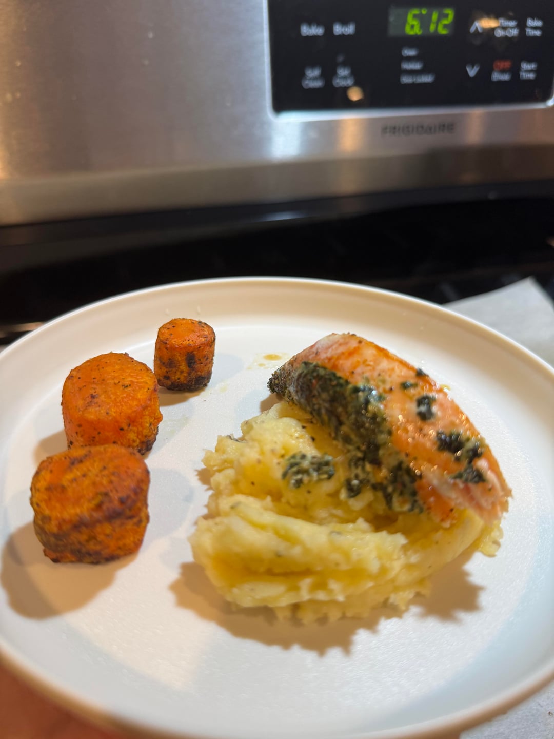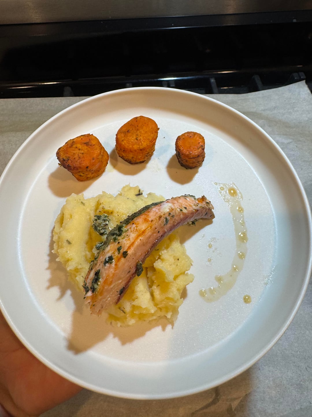 For my toddler: Little Chef today we have prepared for you Baked Salmon, Cheddar Mash, and Roasted Carrots. Enjoy by runs_with_airplanes 4 Comments Raelourut 3 months ago Your toddler eats salmon?!? Bravo. CzarcasticScholastic 3 months ago That looks really good Fuzzy_Welcome8348 3 months ago Looks so good! 4sKompany 3 months ago I thought that was a banana and carrots