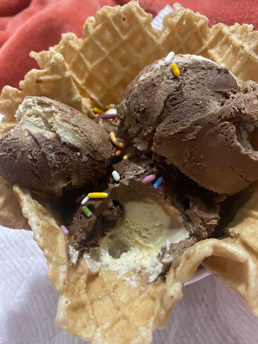 Threw some sprinkles on for a little razzle dazzle – Baskin Robbins charges $2 for the waffle bowl, fyiby KadetheBaker 1 Comment KadetheBaker 1 month ago “Half Baked” by B&J 😊