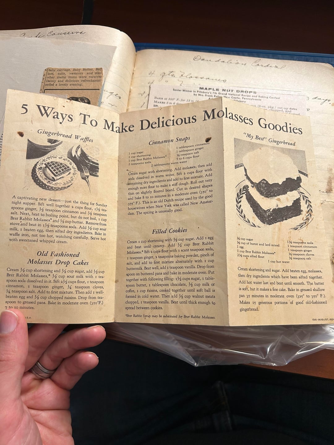 My Grandma recently gave me her own Grandma’s recipe book. I’m scrambling to get the thing properly stored and documented but I thought some folks here would find it interesting as well.