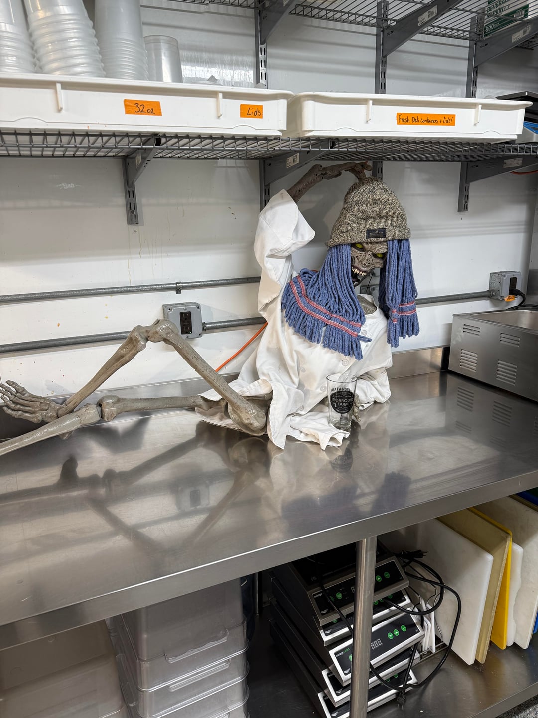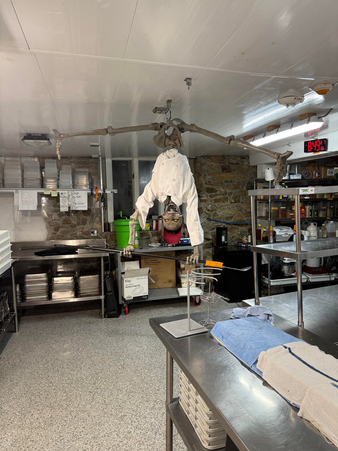Ha! I once stuffed a chef uniform and pants, and left it on a prep table for the morning guy who was coming back from his wedding. The morning guy loved it!