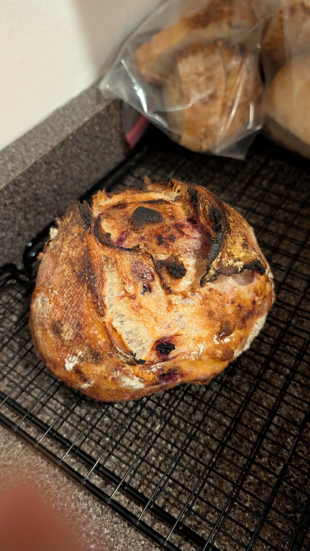 I do a chocolate cherry loaf with the Montmorency cherries from Trader Joe’s and Ghirardelli dark chocolate which is amazing. And I also made loaves where I mix in fruit during stretch and folds. Then at the end of bulk I pat it into a rectangle and spread with cream cheese that I have flavored, then roll into a batard. I made blueberry with lemon cream cheese, apple with cinnamon, and cranberry with orange. The possibilities are endless!!