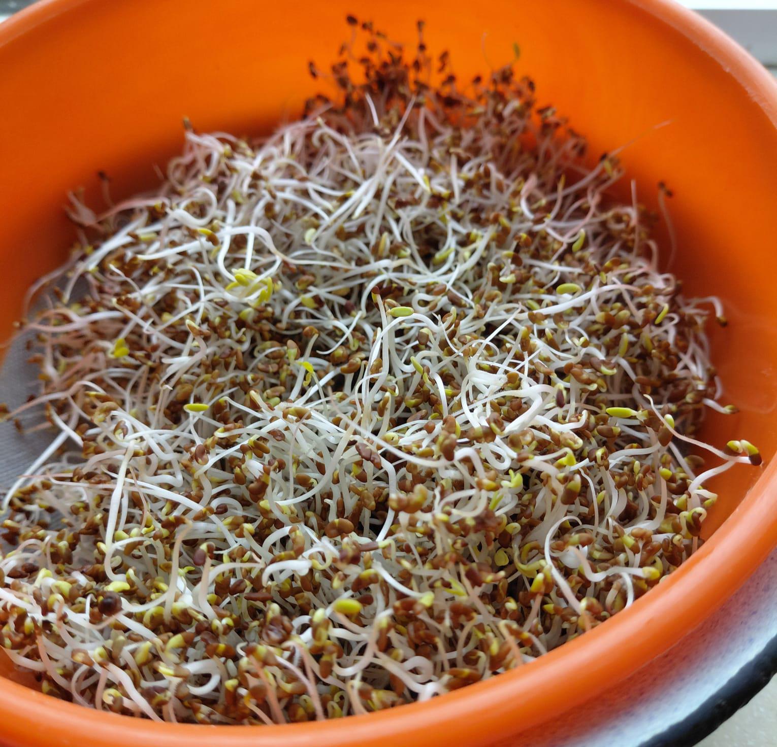Hi community! This is to share my small victory. This is my mom's very first alfalfa sprouts batch which is her sort of surrender to benefits of plant based nutrition. My mom is very carnivorous 😊 and it took me years to convince her include sprouts in her daily life. I know her very well – now that she sprouted her first alfalfa, she won't stop. For her DIY has always been addictive 😄 and she loved the taste and texture