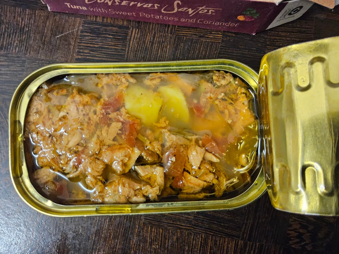 Great salad topper, you really get the portugese sweet potato flavor across in the tuna, but i don't like the lack of filets.by dtagliaferri 2 Comments Grouchy-Cat1584 1 month ago That’s an interesting combo I’d never seen before! Perky214 1 month ago Can you tell us more about the ingredients – are there any other spices besides coriander in it for example?Where do you find this tin – as a Texan, I’m totally intrigued by this combo.
