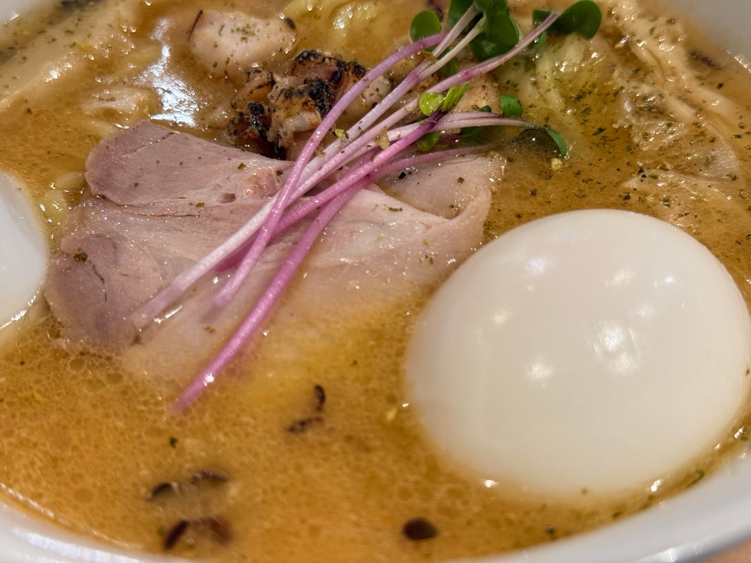 This one’s legit amazing: a super rich, creamy broth made from golden-eye snapper, mixed with their own special miso blend. The seasoning is really mellow, so you get all that clean, fish-broth flavor without anything overpowering it.