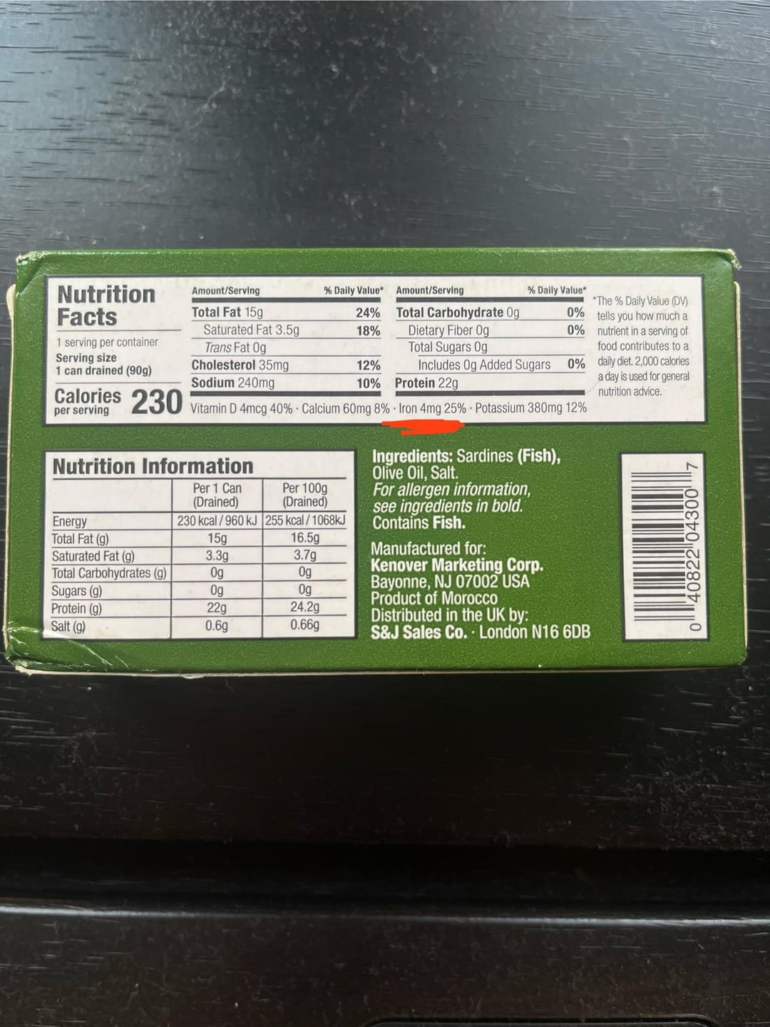 I’m hesitant about the crown prince sardines given their high calcium levels, which can hinder iron absorption. Im also trying to avoid dairy, alcohols and caffeine. Would appreciate insight from someone well-versed in nutrition.
