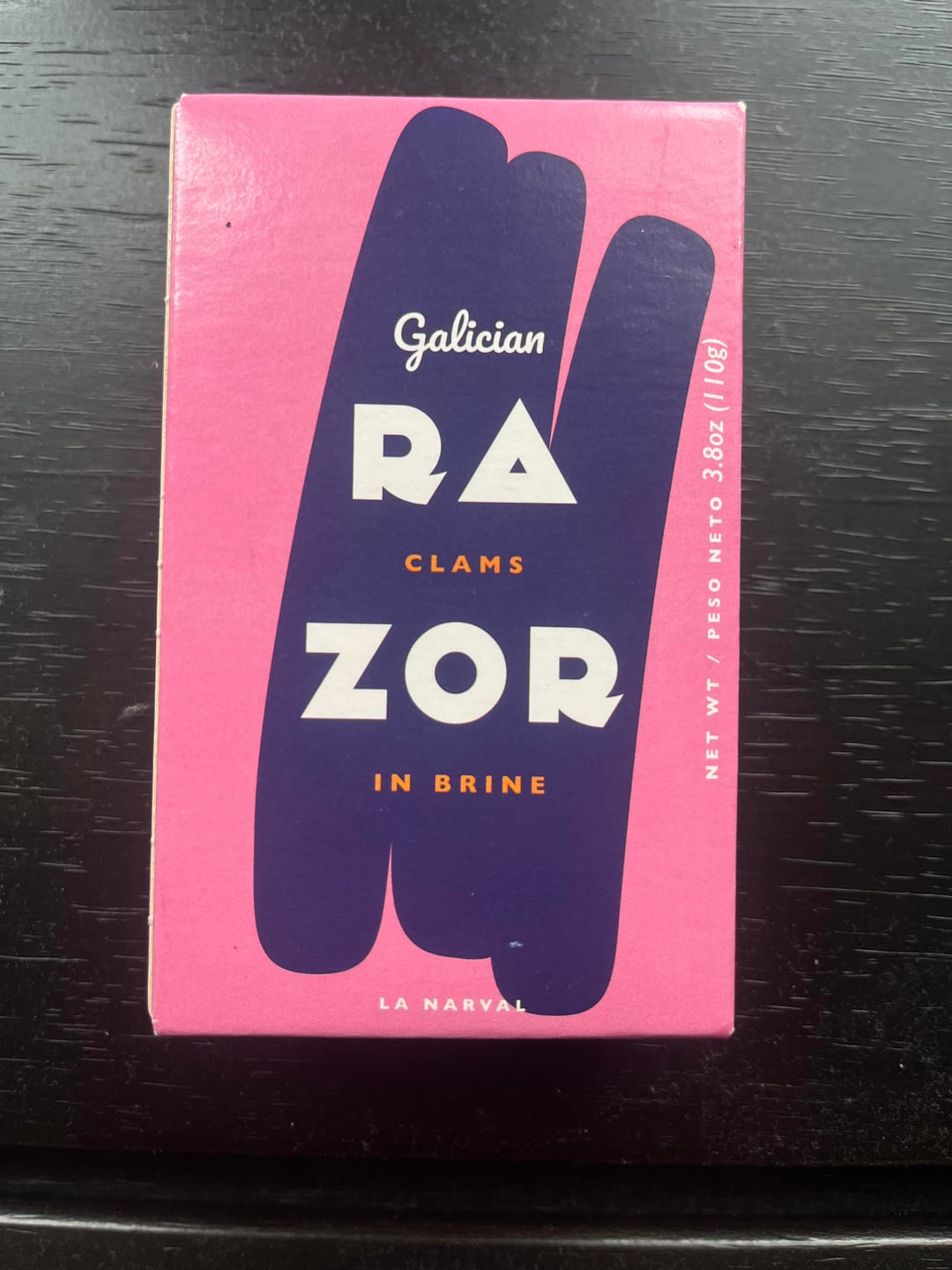 I’m happy to have a variety of options to look forward to during my period. Especially glad to have the razor clams (and the scallops) as a low-calorie, low-fat option.