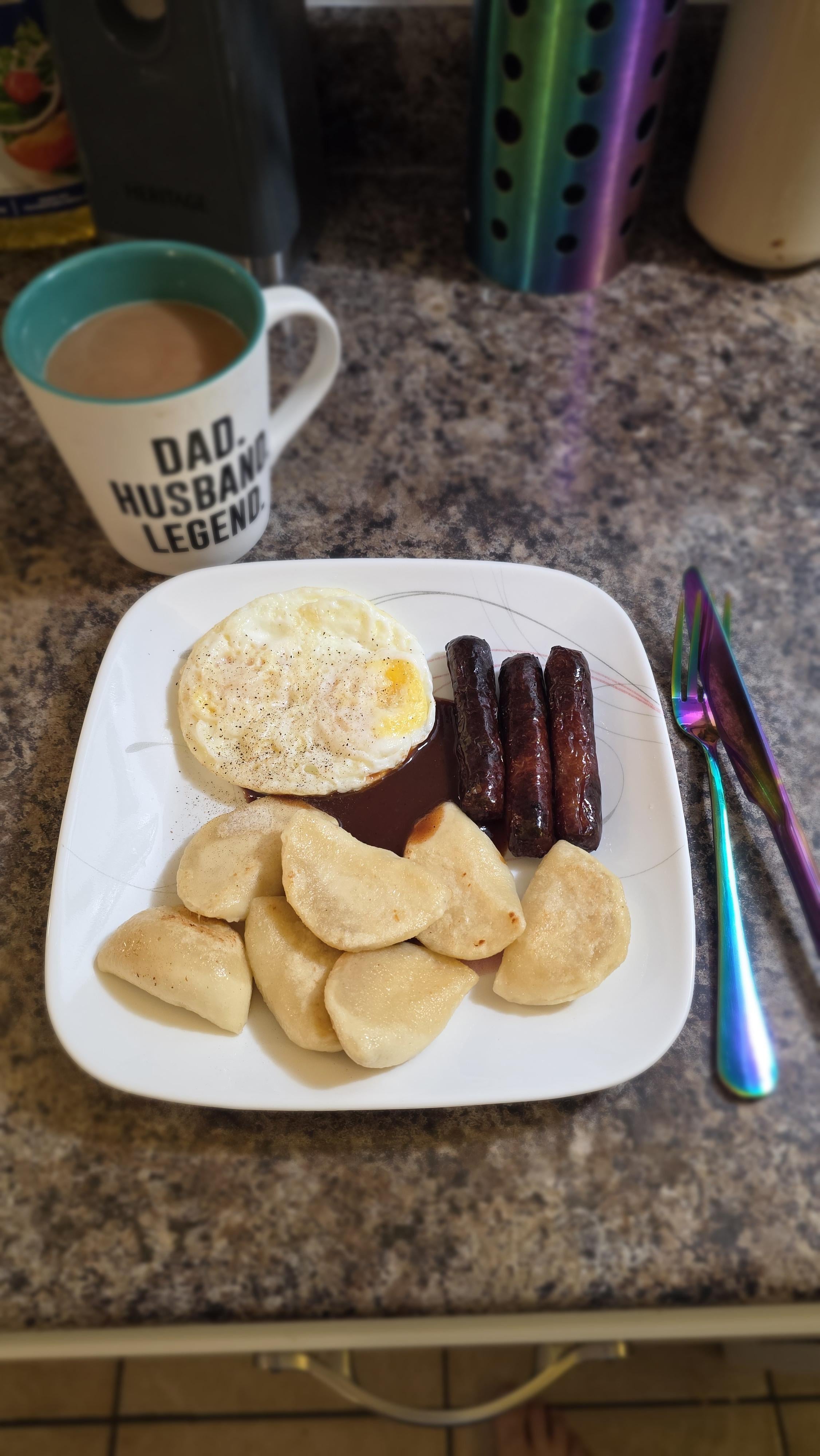 Cottage cheese perogies, lightly fried with sausage and two eggs. Dash of pepper and a dollop of HP sauce.by okanagan_man84 6 Comments Ok_Culture_1914 1 month ago Very nice. It wouldn’t be the same without H.P. sauce. 😋👍 Bubbly57 1 month ago This looks incredibly delicious 😋 Fuzzy_Welcome8348 1 month ago That mug is a total WIN Relative_Yesterday70 1 month ago Give me all your pierogi and no one gets hurt Limeylou7 1 month ago Pierogis for a breakfast potato/carb is genius QuantifiablyMad 1 month ago What is hp sauce