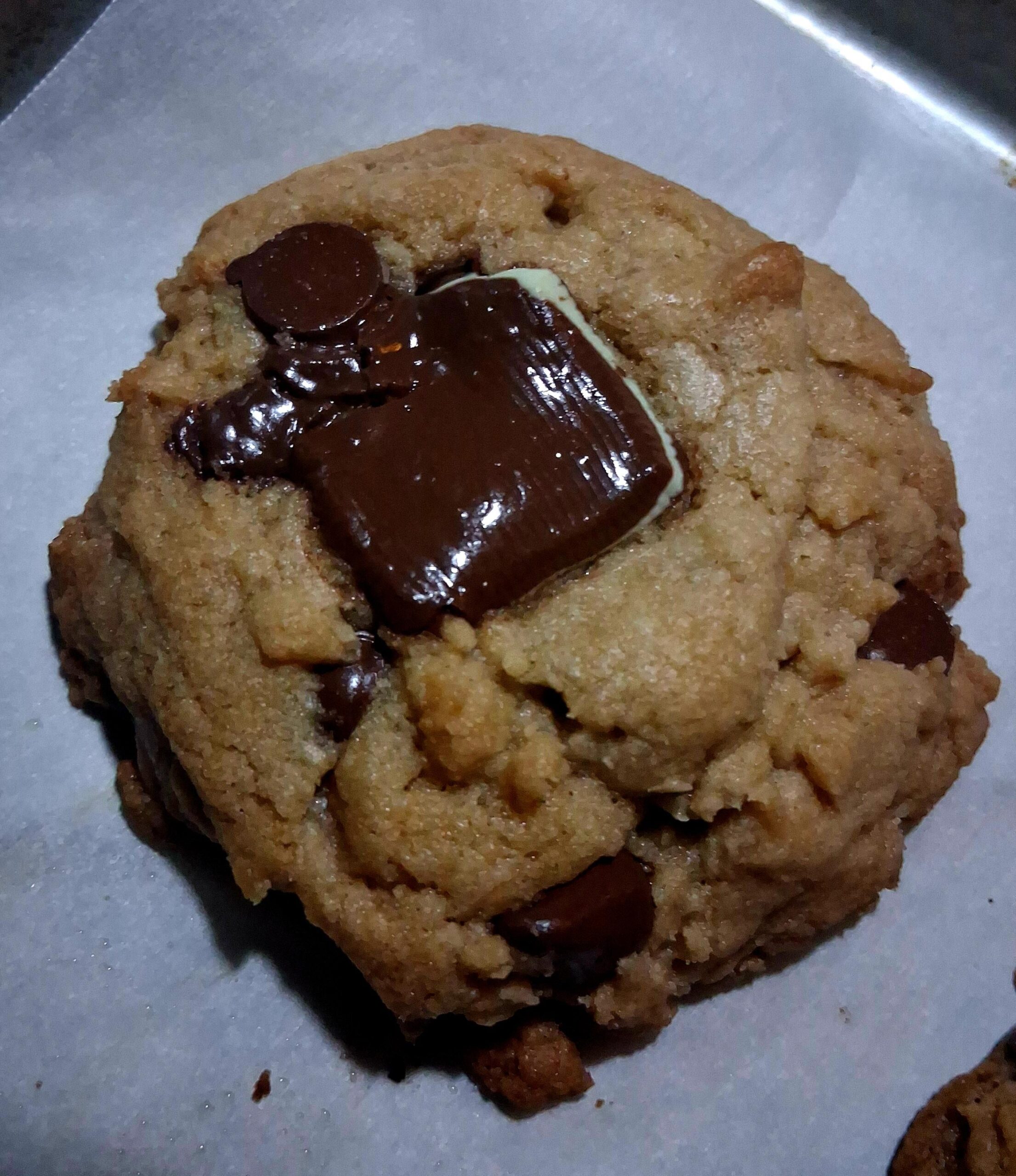 Inside is semi sweet chocolate chips, on top is 1/2 of an Andes chocolate mint candy.by Personal-Age-6999 1 Comment Bubbly57 1 week ago This cookie looks amazingly delicious 😋