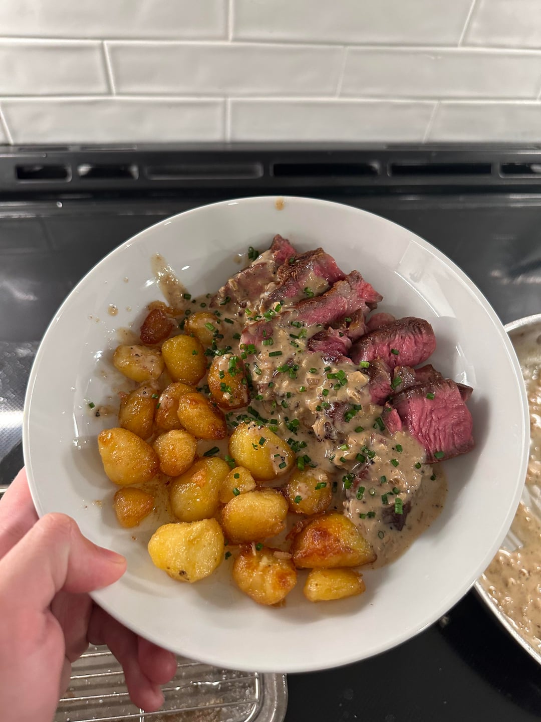 Looks great. Nice sear, great cook, and beautiful looking taters but damn those are local butcher prices!