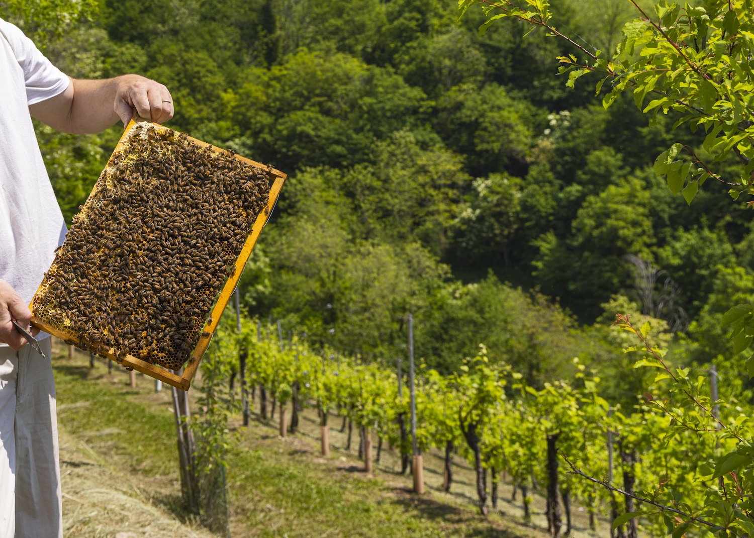 The vineyards rely on natural pollinators as part of their ecosystem-management approach. “We have our own honey production. We control the pollution in our vineyards, thanks to millions of bees,” he adds.