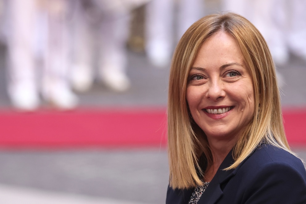 Italy’s Prime Minister Giorgia Meloni looks on prior a meeting with French President Emmanuel Macron at Chigi Palace, June 3, 2025, in Rome.