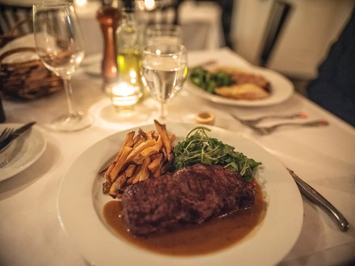 Champetre is the place to be in fall (and we suspect winter too) with hearty entrees like Provençal mainstay bouillabaisse made with saffron rouille ($42). Leaves are turning? Cue the coq au vin ($38) with mushrooms, lardons, pinot noir, pearl onions, and…pasta? Have the duck your way—confit over lentils or magret with a seasonal, local fruit sauce (both $35). Your steak frites can come au poivre with a charcoal-grilled peppercorn and cognac sauce or au bearnaise ($42). The pan-seared, lemon garlic baby chicken ($38) rounds out the entrees.