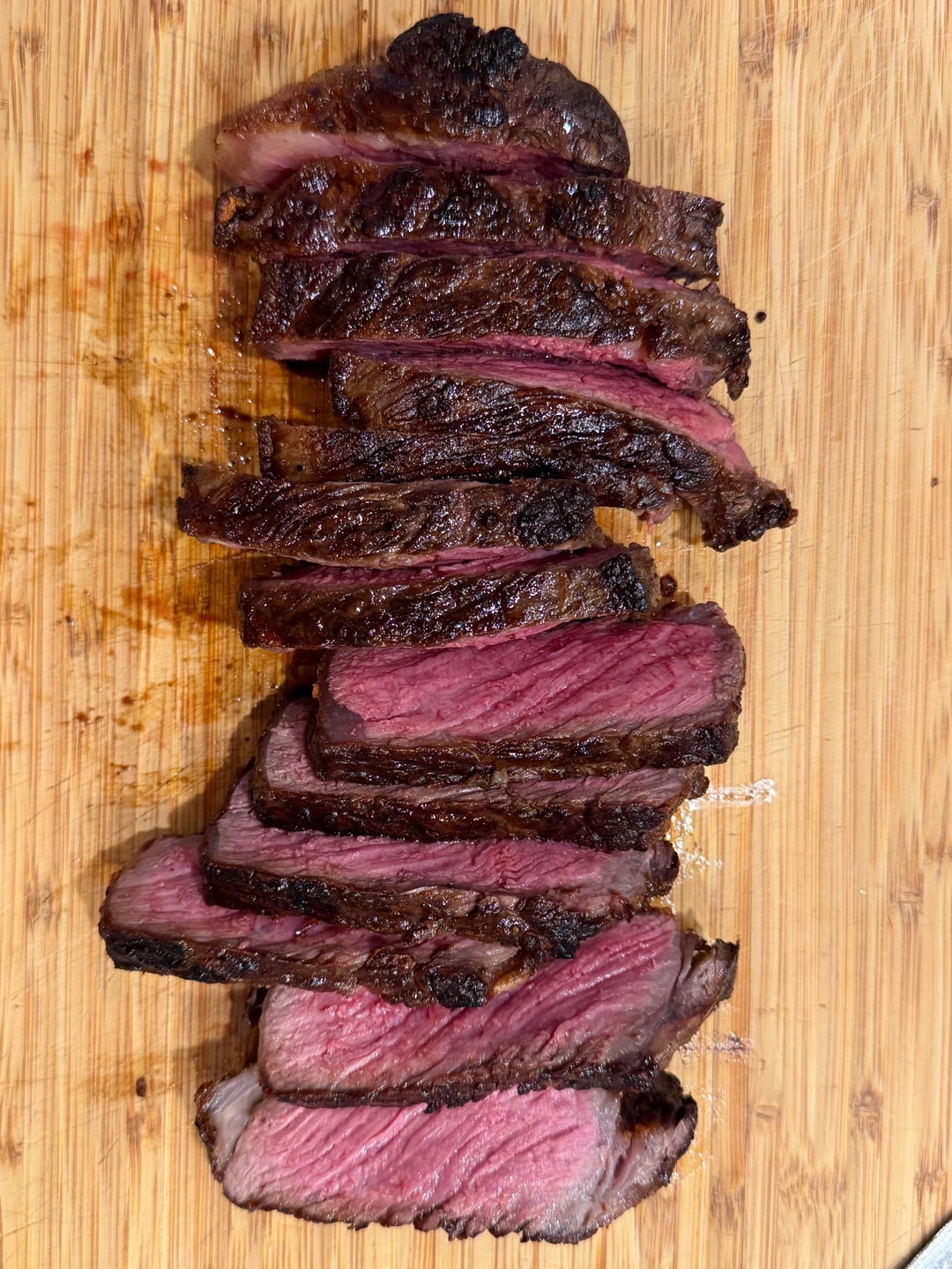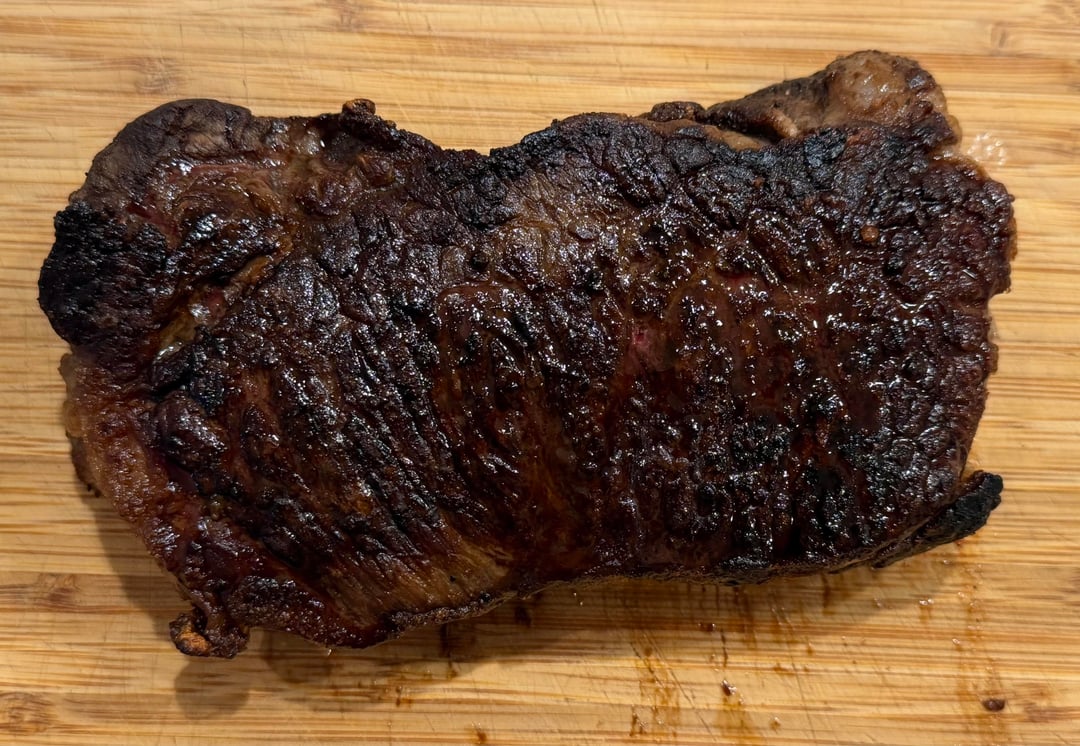 That said, I do love me a “caveman style” steak. I literally just light up the charcoal grill with a 2-zone setup, no accelerants just hot burning wood, throw a room temp slab of meat on there directly over the flame, flip it a bunch of times, move it to the cool side and monitor temp with a probe, throw it in a plate, season with salt and pepper, and drop a slice of Kerrygold on top. No fancy prep work, no basting, no dry brine, no sous vide or oven or smoker, nothing. I’m good at stovetop steak too, and have a pellet smoker and all the bells and whistles for when I’m feeling fancy, but in my experience that only results in slightly better steak when everything is executed perfectly, and so much more work.