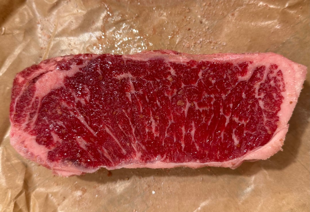 I’ve tried reverse sear, sous vide, regular sear, oil, no oil, grill. Let it rest, don’t let it rest. All with good but not great results. Well my dinner plans got cancelled so I made this last minute and it was incredible. Prime strip, salt, sear on all sides about 8 minutes total on a cheap wobbly non stick pan, gas as high as it will go, surface read 600+. Finish on rack in oven at 325 until it hit 125. Rested it peaked at 130. From now on screaming hot pain with no oil, just salt.