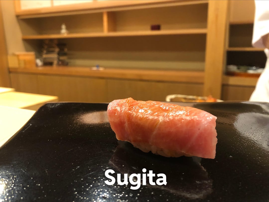 - Sugita (Tabelog 4.64 Gold, Chefs' Gold / Google 4.6). Most diners seemed to be locals with 2-3 foreigners. Almost everything tasted fantastic, except for the dried fish eggs. Memorable pieces: bonito; chutoro; otoro; yellowtail (buri); hard clam (hamaguri); uni; sea eel (anago). A local took me here and it seems to be impossible to re-visit on my own. 44.000¥, but I ended up paying ~74K because I ordered all additional otsumami and nigiri pieces, on top of some repeat nigiri.
