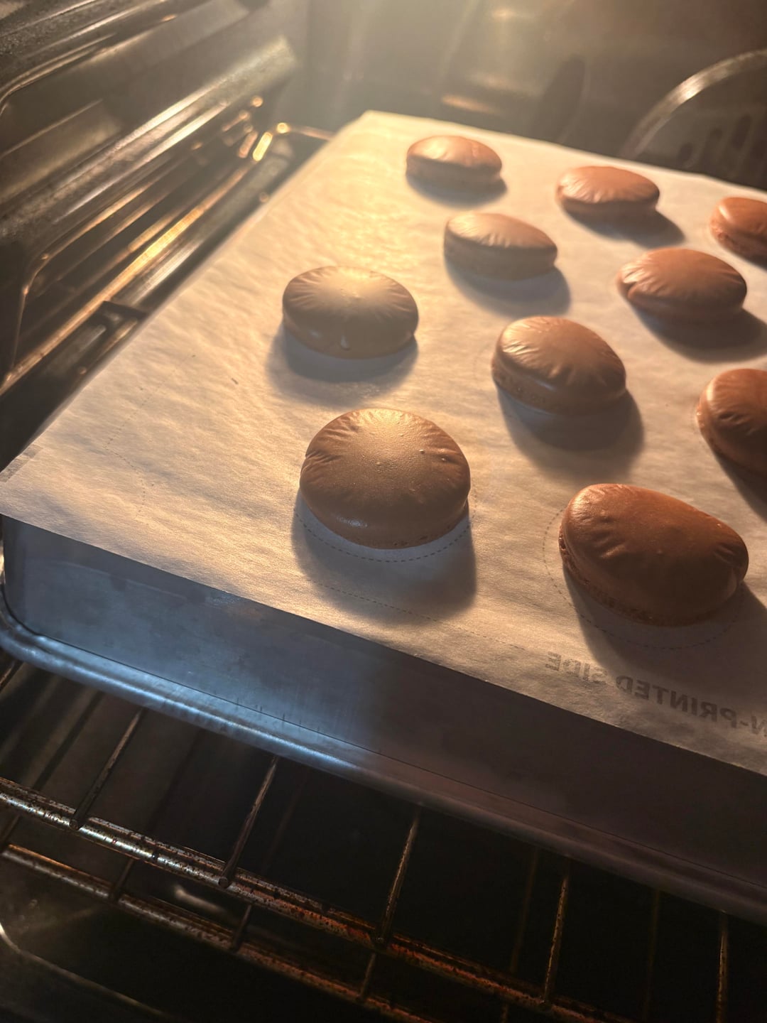 The first picture is the batter after resting about 30 minutes, second is them doming in the oven, and third is after I take them out. What am I doing wrong 😠I baked a batch at 300F, at 280F, and now 240F. I don’t know what’s happening