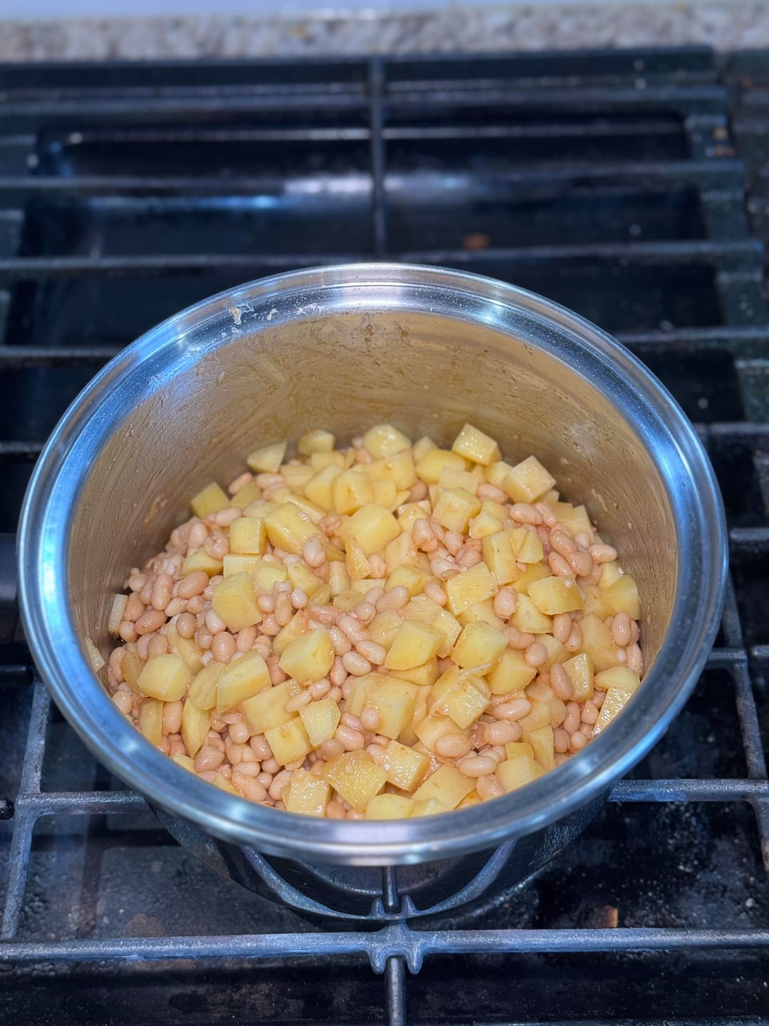This minestra di patate e fagioli is one of those dishes that reminds me what Calabrese cooking is all about. Simple ingredients coming together to make a hearty, comforting meal in the same way my nonna always made it.