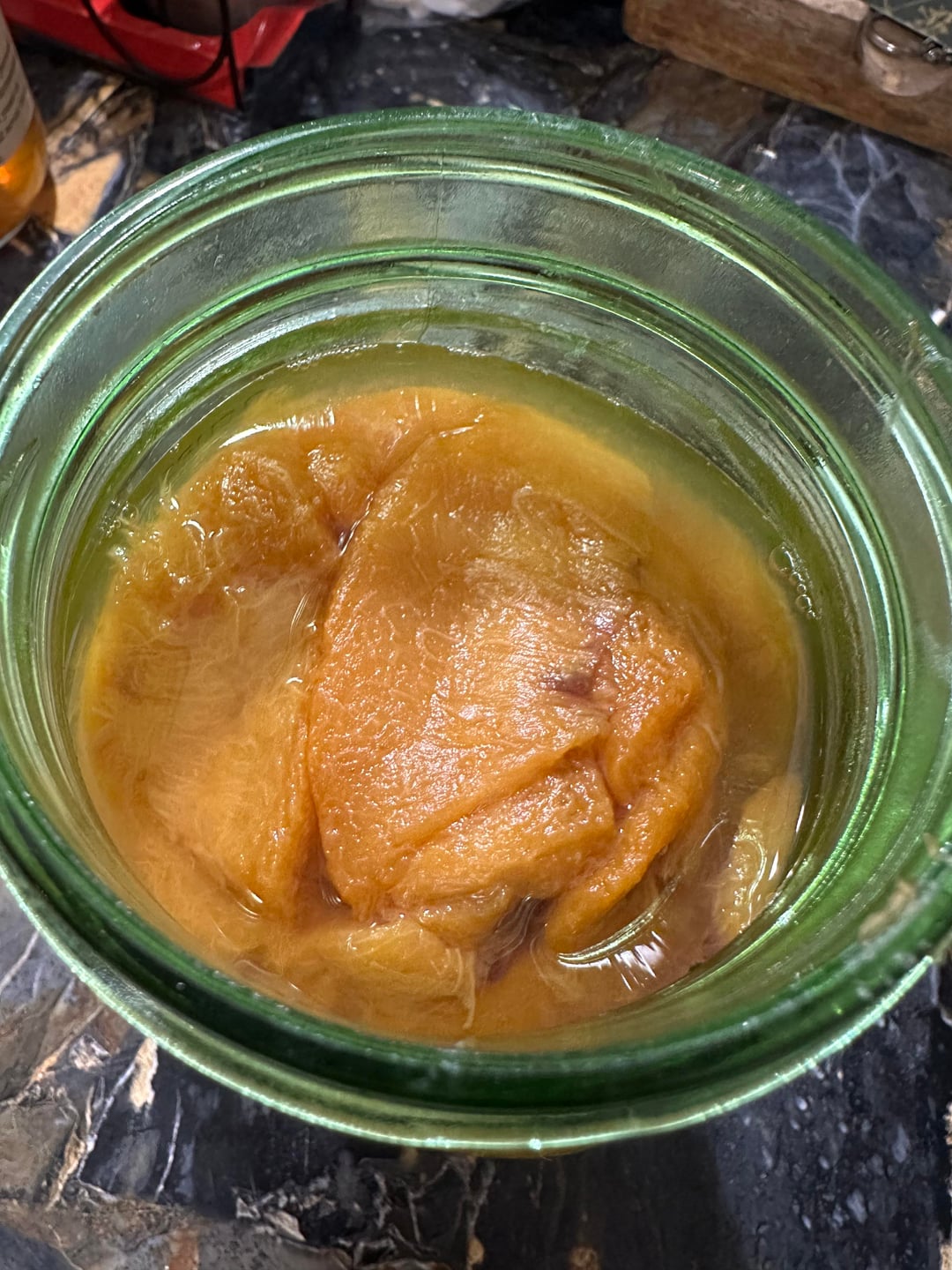 I used the ball spiced peaches recipe, I’ve made them before and loved the flavor profile. This jar was one of 3 that siphoned. I’ve seen discolored peaches before but never “dry” like this on top, are they safe, has anyone seen this before? The siphoned part on the lid was under the seal. Safe seal, no popping. Stored without ring in cool dark area, nothing placed on top canned approx 4 months ago. Thanks everyone!