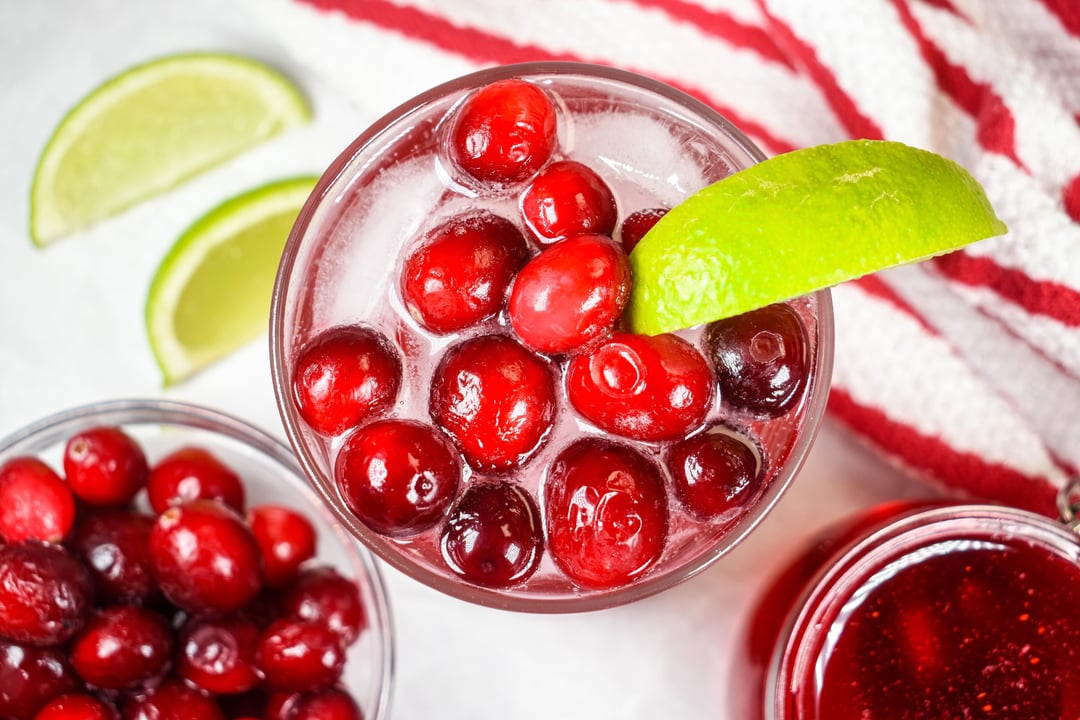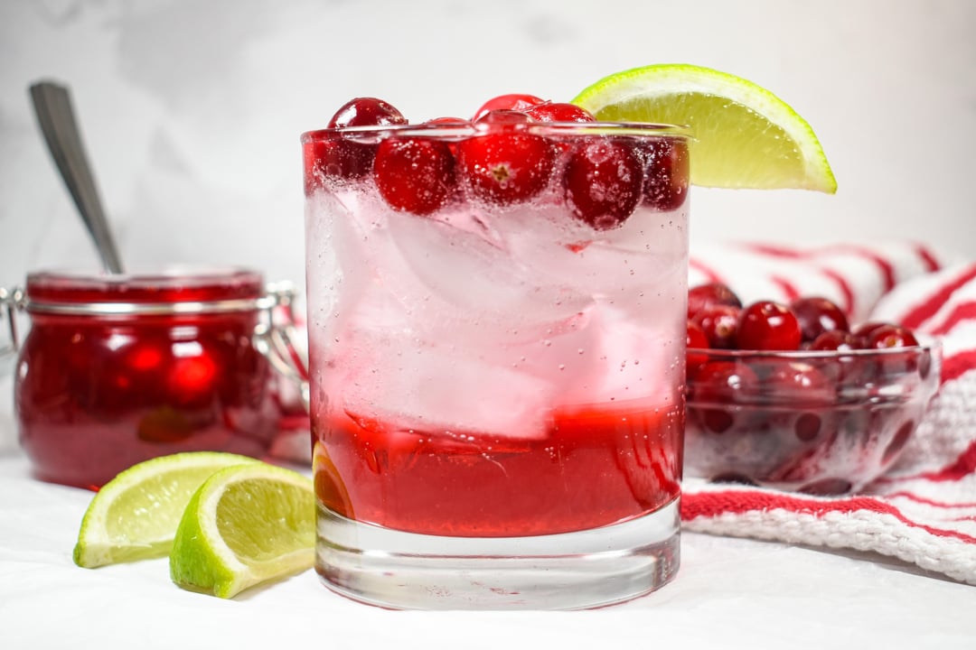 Homemade cranberry simple syrup made with fresh cranberries and granulated sugar. Ideal for sweetening and flavoring cocktails, mocktails, and Christmas punch!